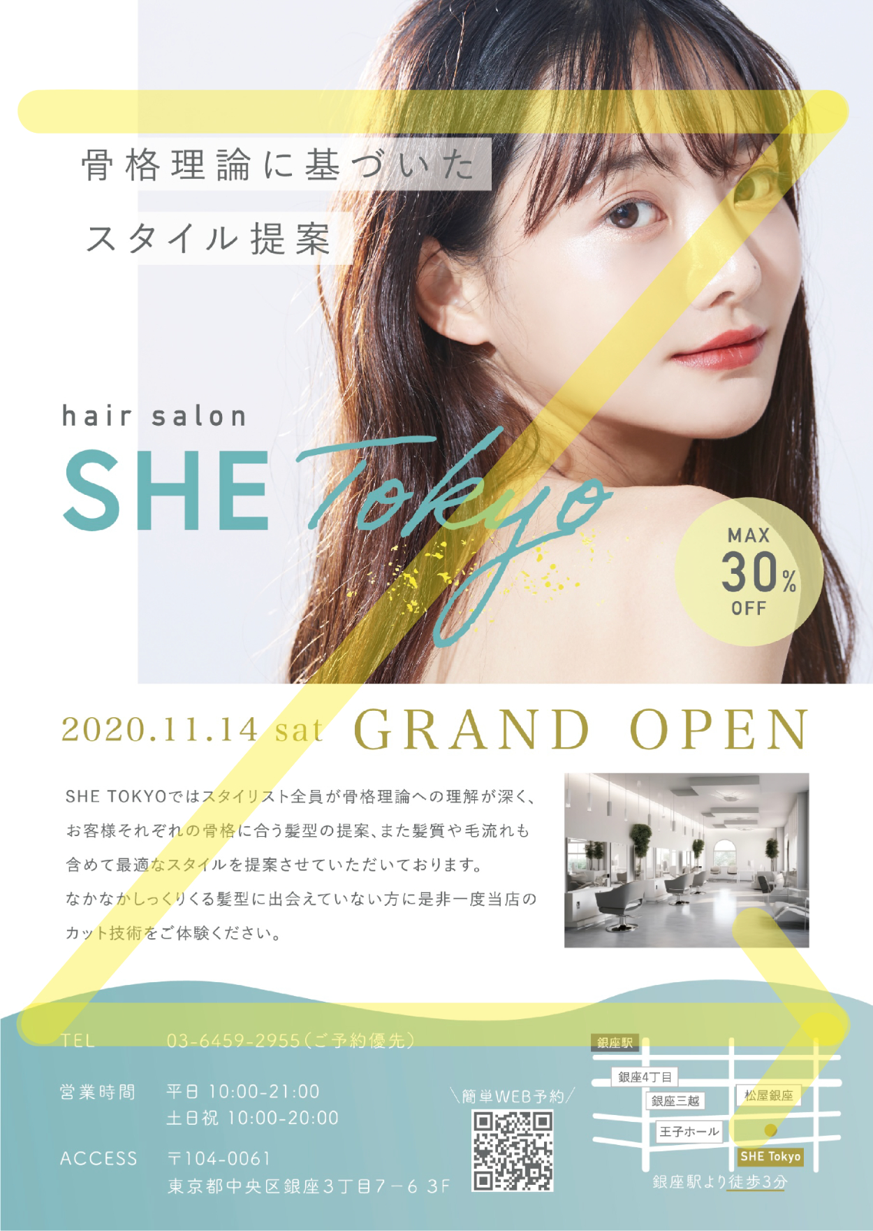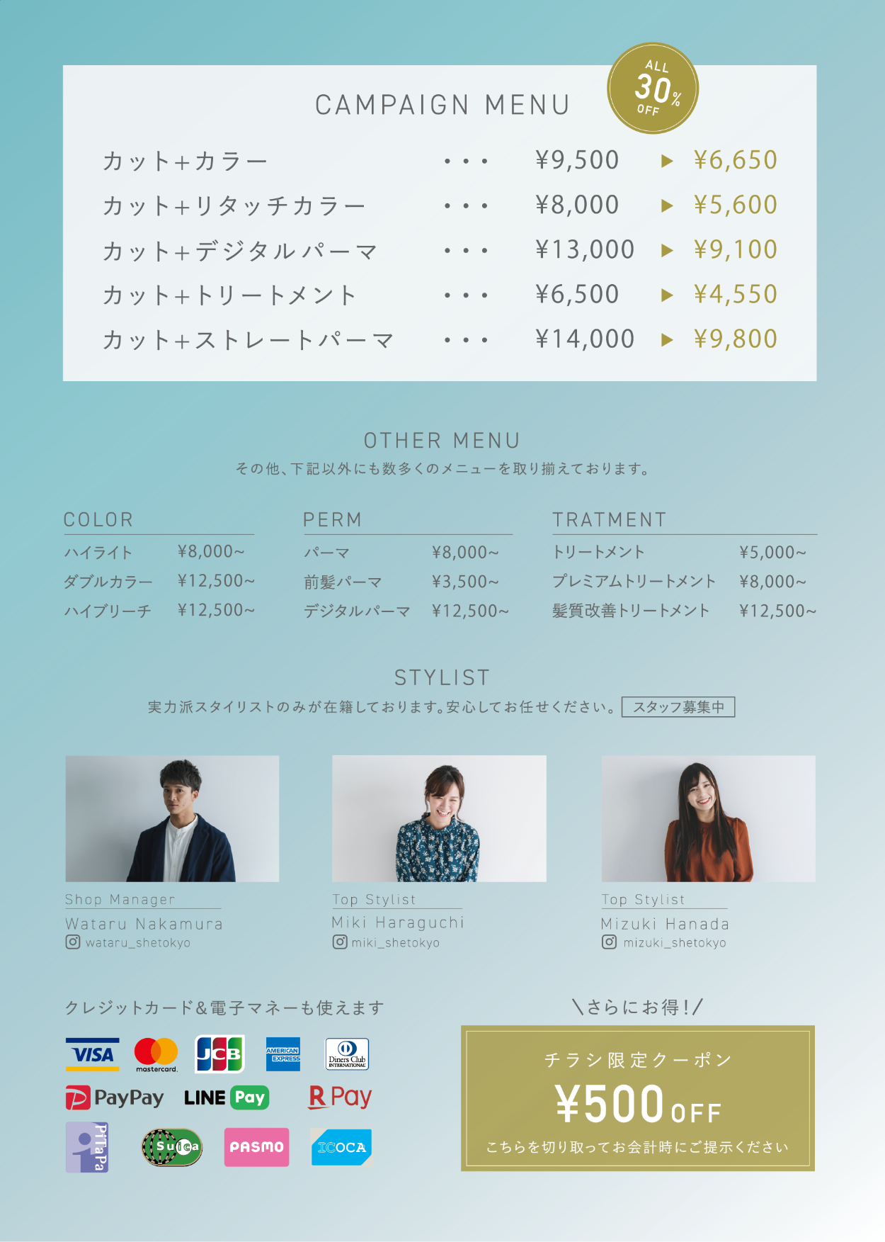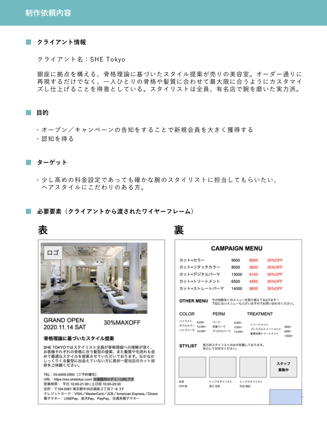 SHElikes MULTI CREATOR COURSEの制作課題にて、美容室のオープニングキャンペーンのフライヤー制作に取り組みました。(制作期間:4日)