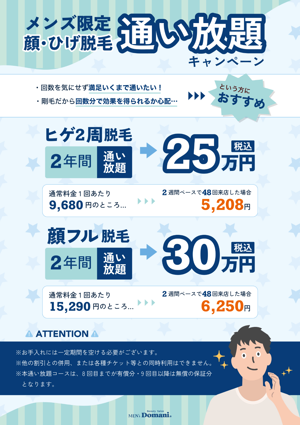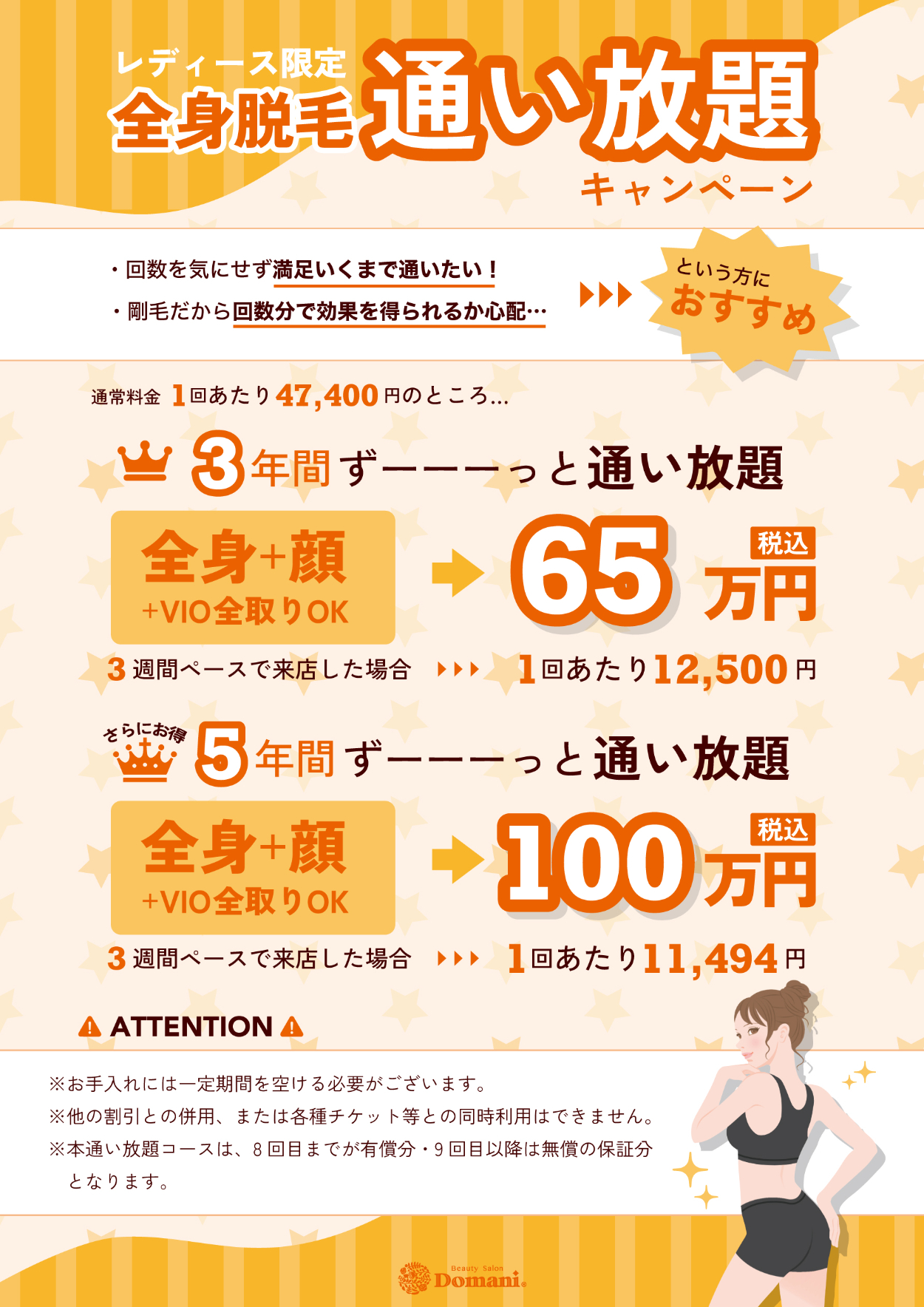 美容脱毛サロンの通い放題キャンペーンPOPです。 店頭に設置し、キャンペーンを周知するために作成しました。