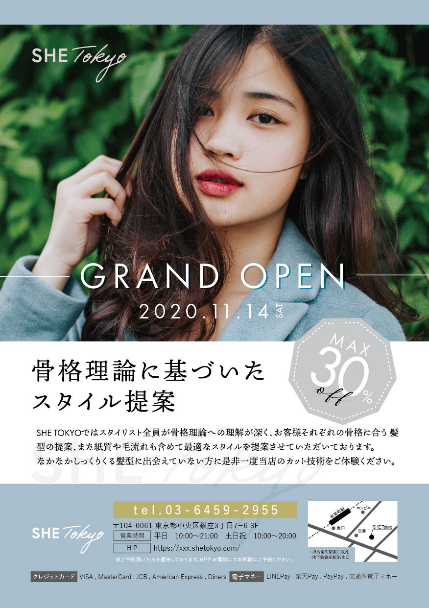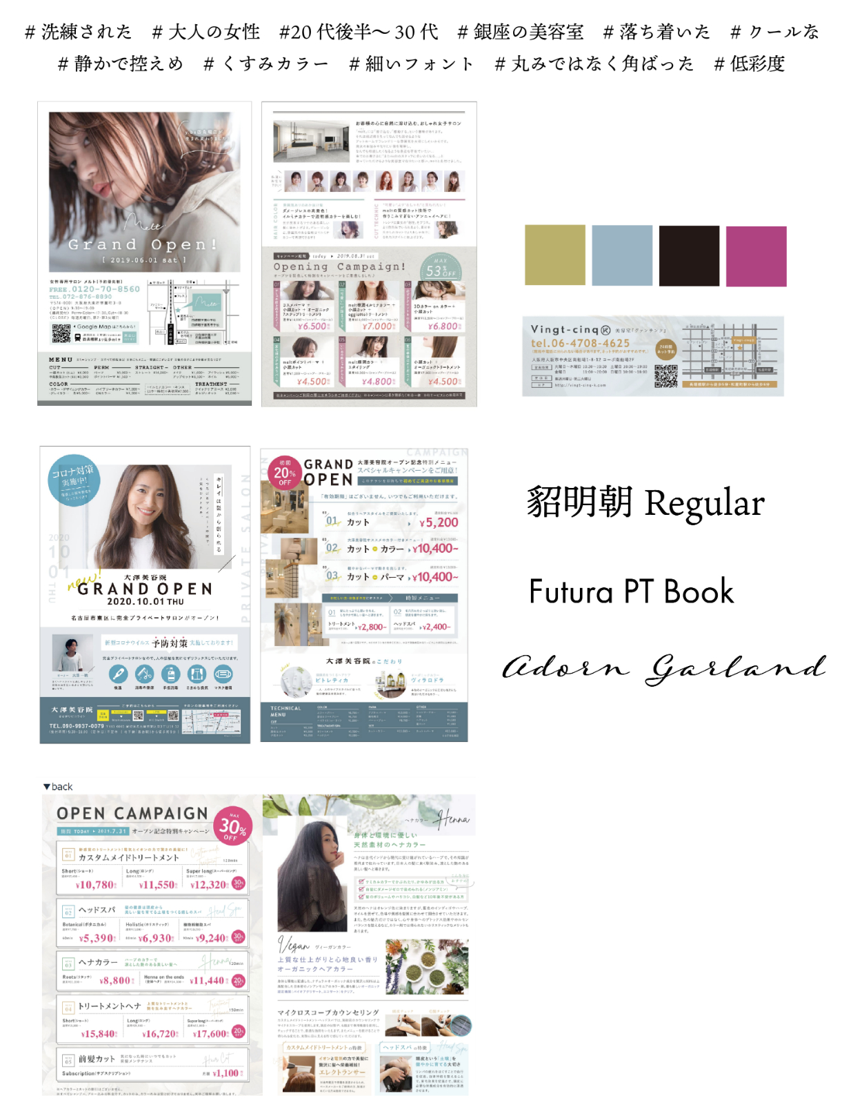 【SHE likes MULTI CREATER COURSE課題】銀座に拠点を構える、骨格理論に基づいたスタイル提案が売りの美容室の開店告知フライヤー(ポスティングを想定)という架空案件で制作しました。
