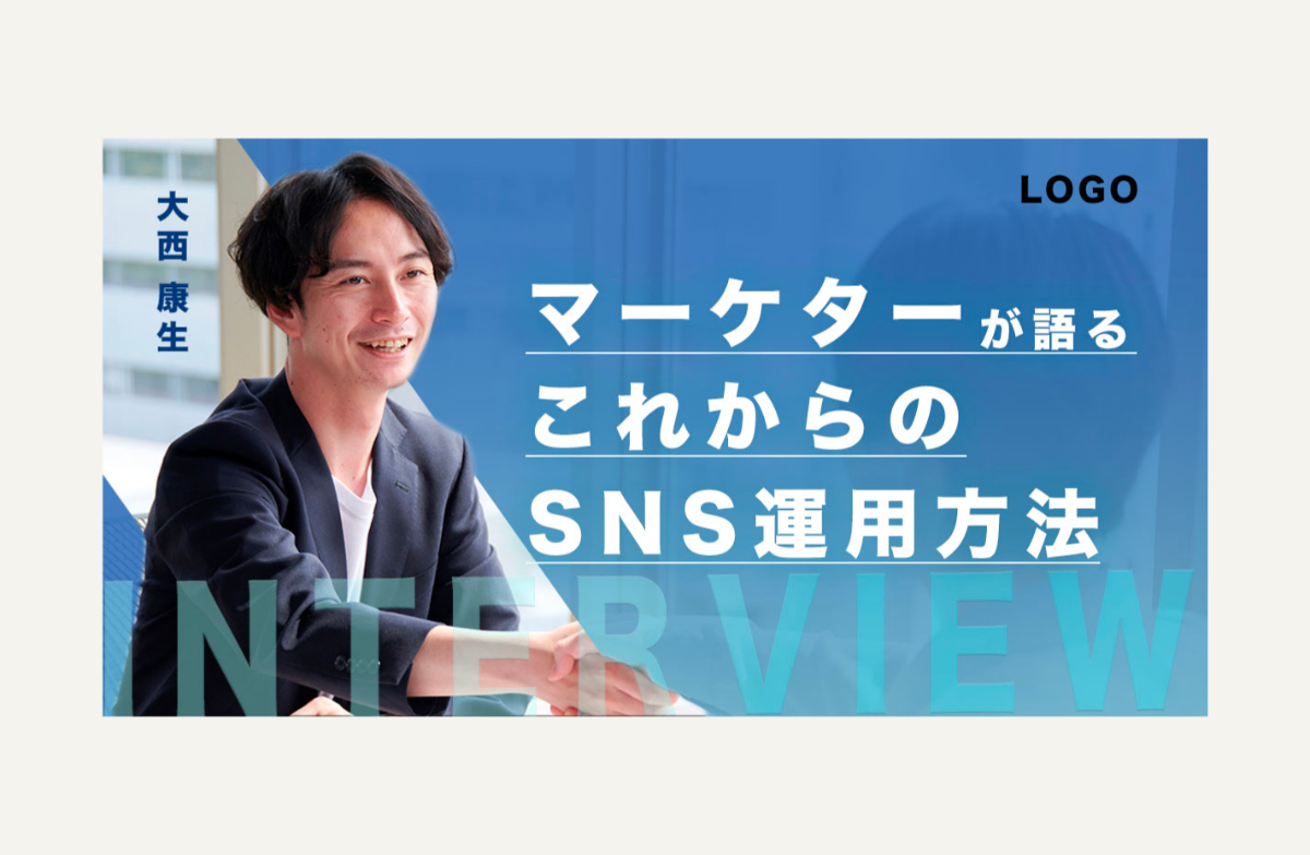 - 「interview」部分にオーバーレイをかけて、塗りと不透明度を下げることによって、バナーイメージに沿った雰囲気作る