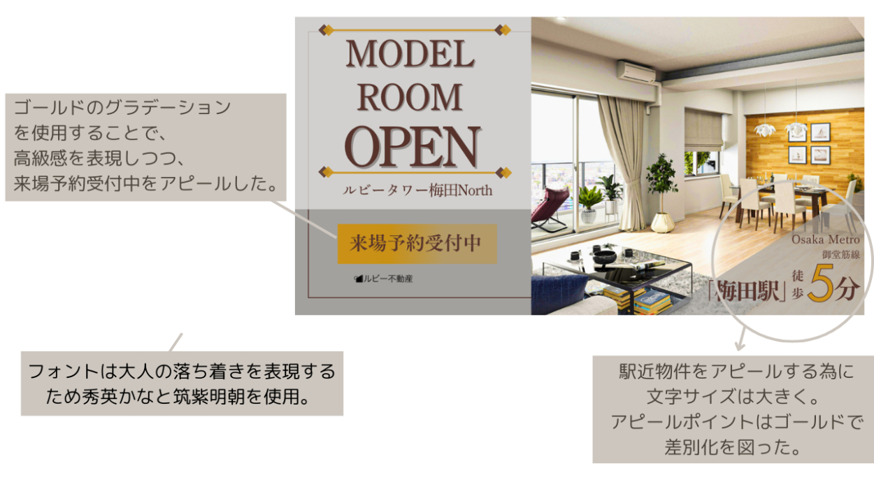 - ルビータワー梅田North モデルルームオープンバナーを作成