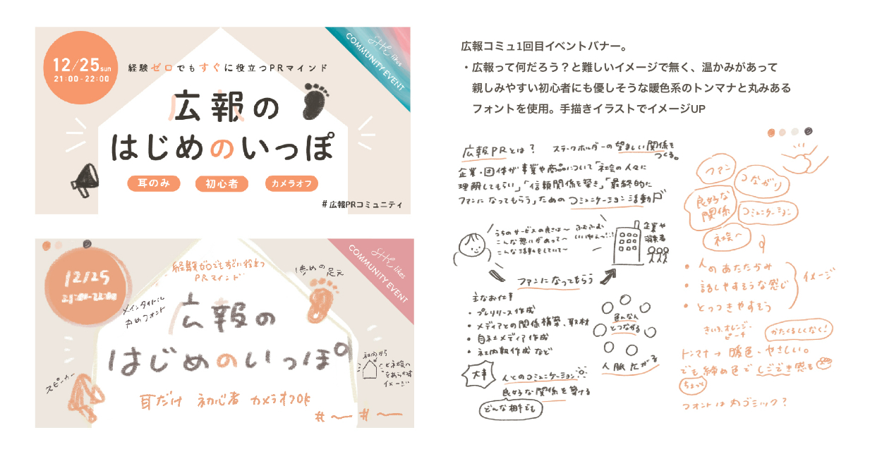 - 自身も広報PRとは、深く認知が無かった為まずは理解を深めてからデザインに落とし込みました。