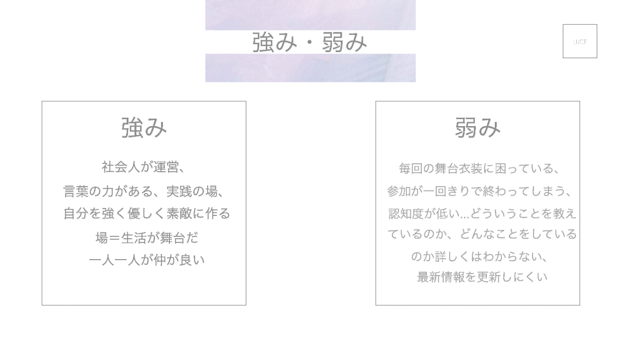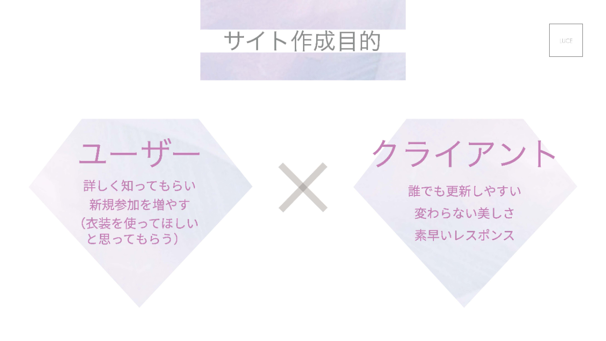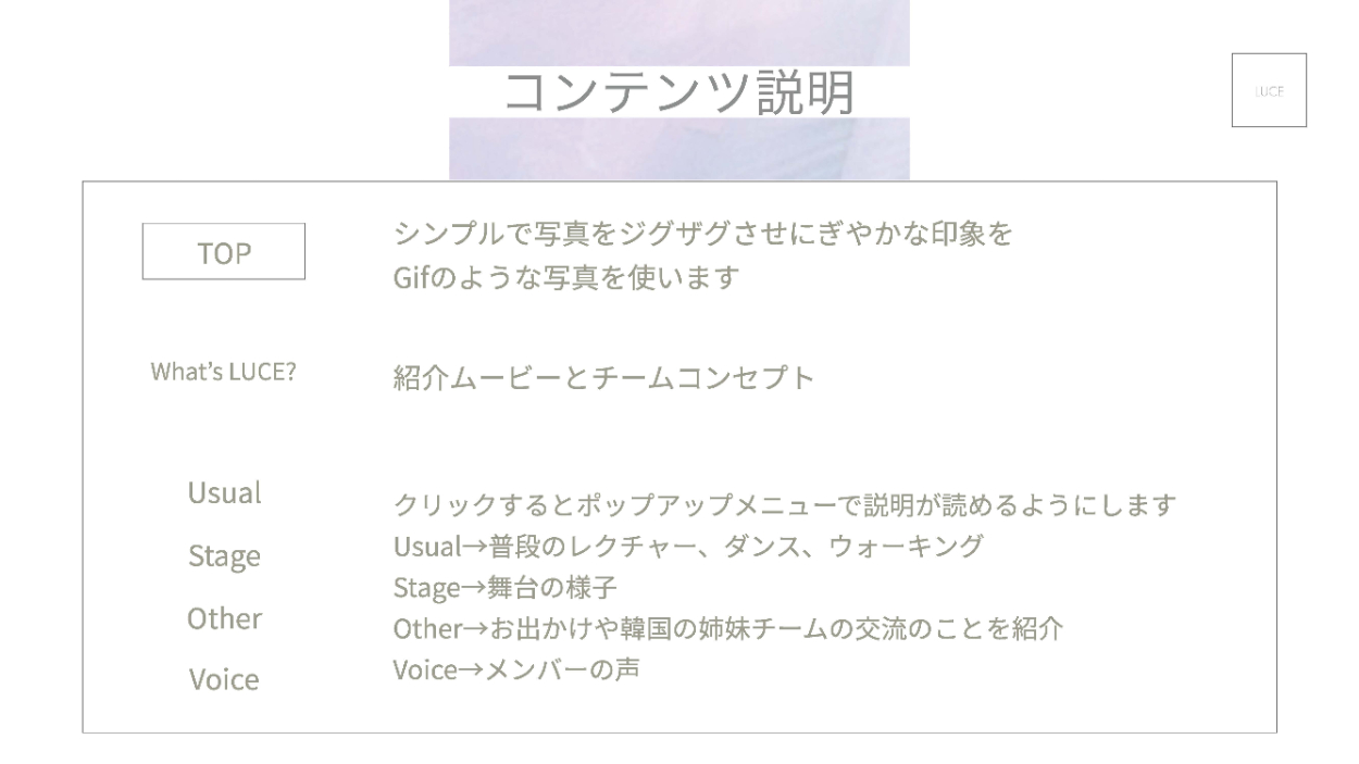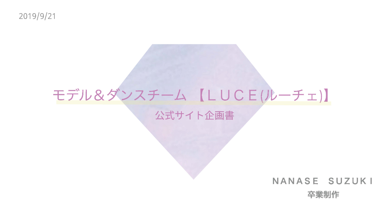 デジタルハリウッド卒業制作 nanase Designer OVERVIEW LUCEサイトの原案。企画、デザイン、コーディングで制作。モバイルファーストで作りました。 YEAR 2019 ○企画書○出来上がったサイト○ワイヤーフレーム(AdobeXD使用)