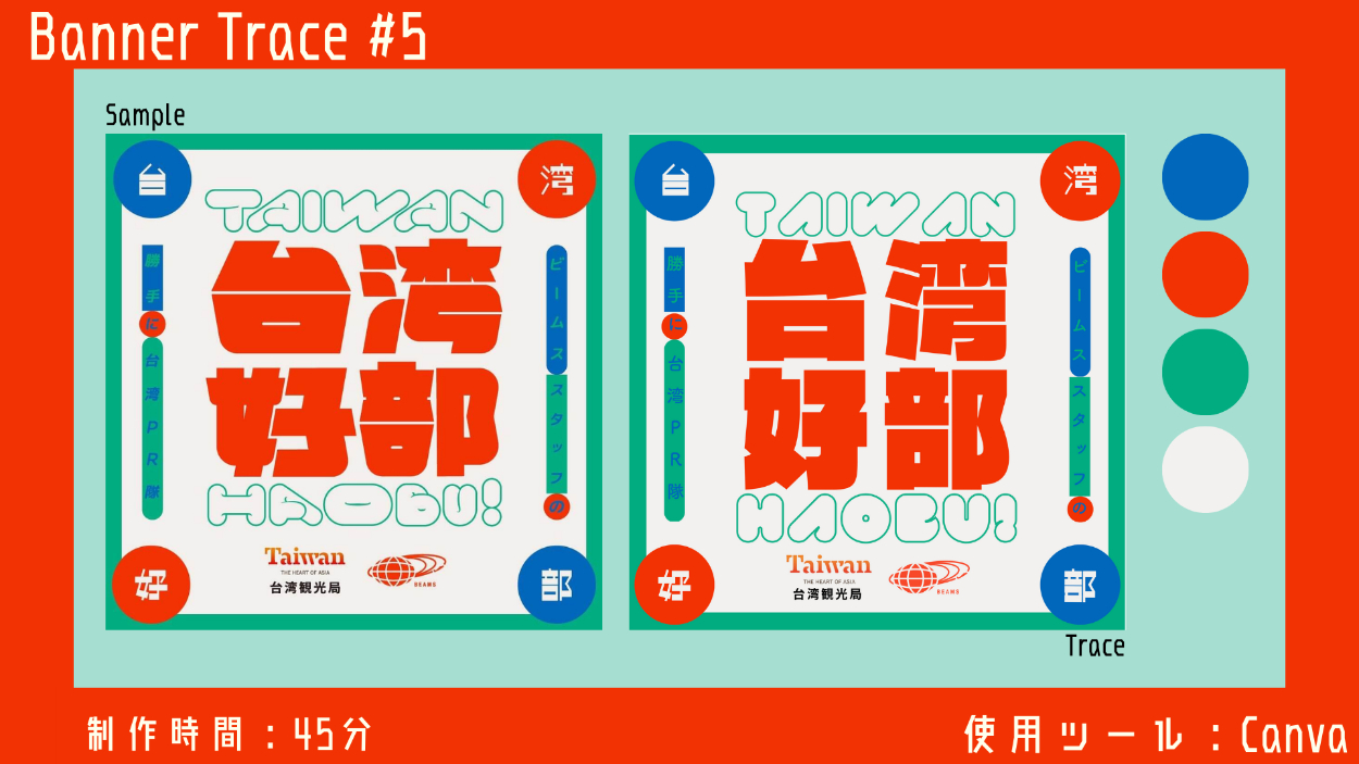 ・色や文字の配置などで台湾を連想させるデザインになっている