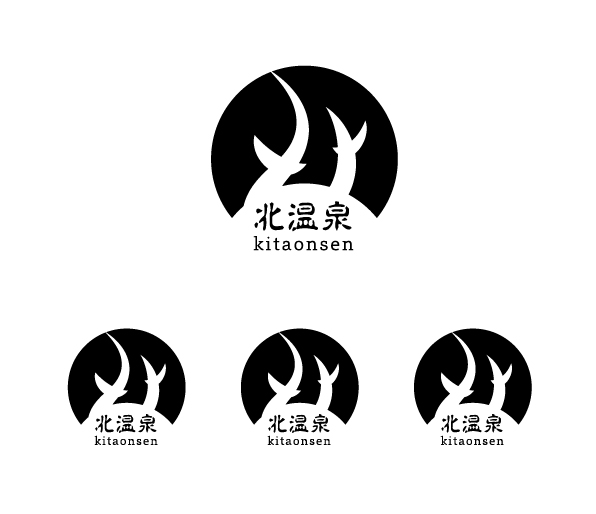 - ヘッダーにロゴを配置するため、ロゴを制作しました。温泉旅館の「北」と湯気が立ち上る従来の「温泉マーク」をモチーフにしています。フォントは古い書物をイメージした万葉古印ラージを使用。おどろおどろしくならないようにアルファベットを入れてバランスを取りました。