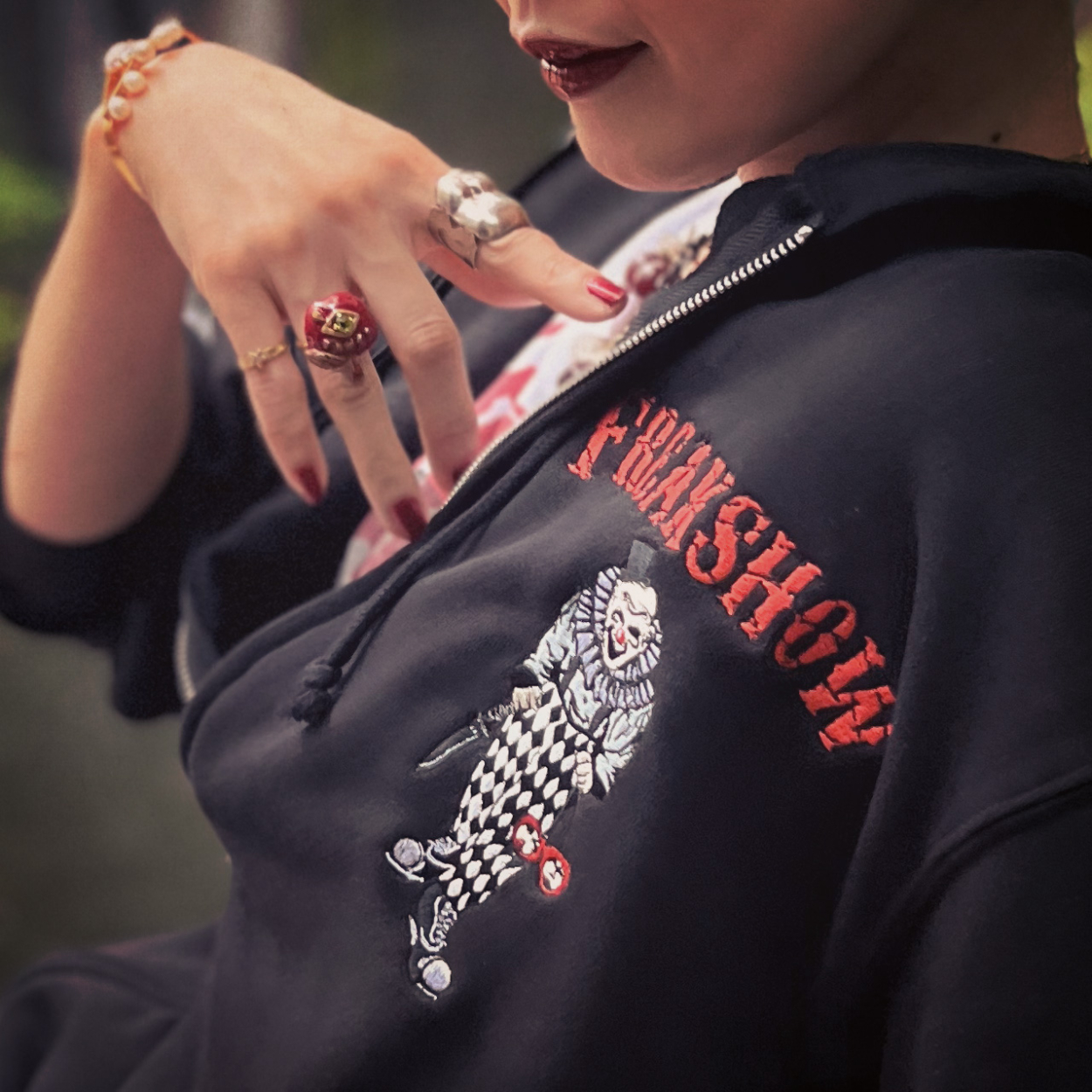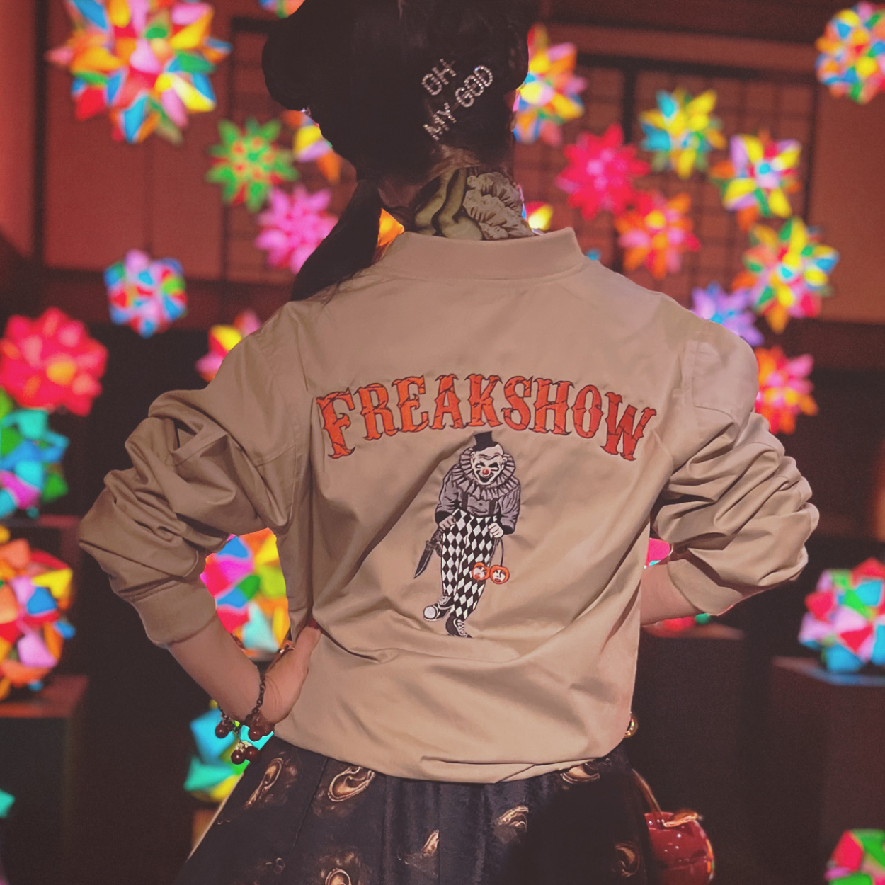 アパレル物販イベントグッズ製作 moegi デザイナー,アクセサリー作家 OVERVIEW 架空のホラー映画をテーマにしたアパレル物販イベントのグラフィック全般、刺繍ジャケット、スカート(オリジナルテキスタイル)他ファッションアイテムをデザイン・製作しました。 YEAR 2023