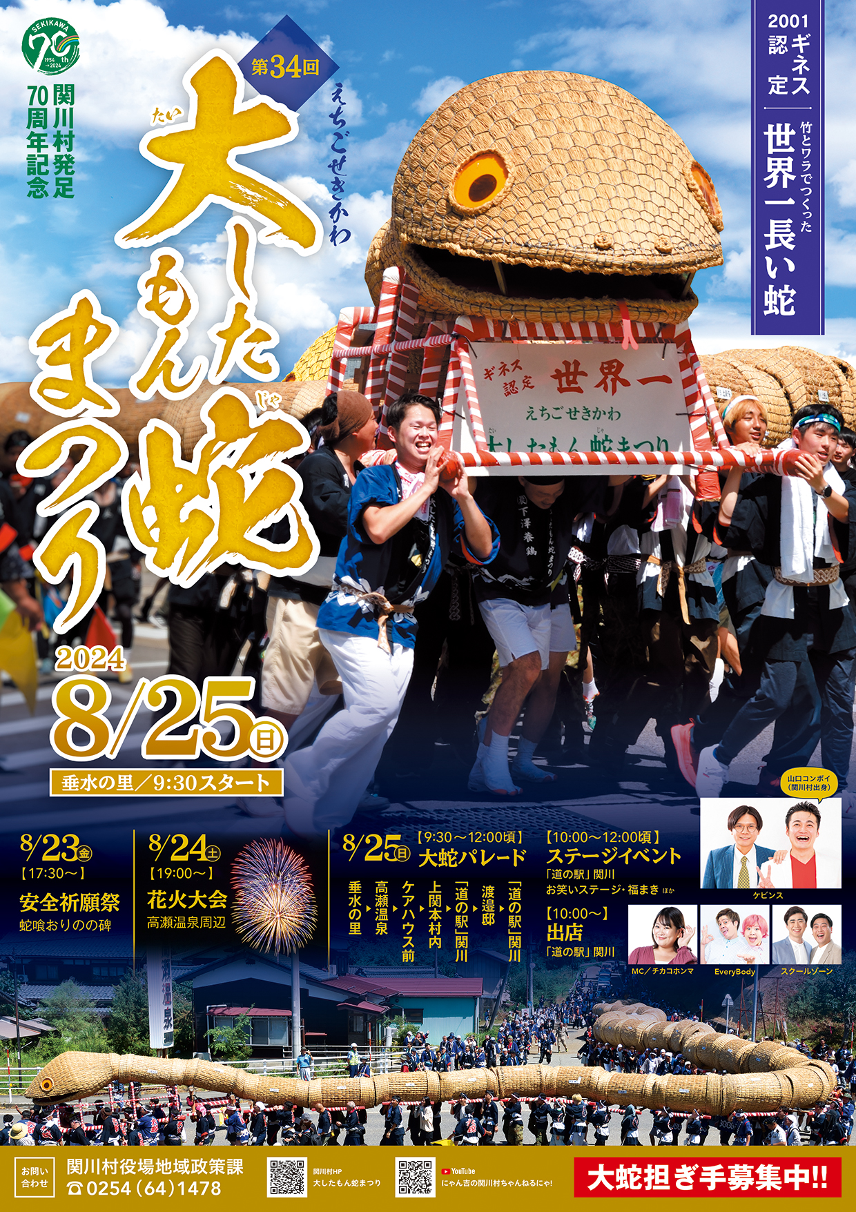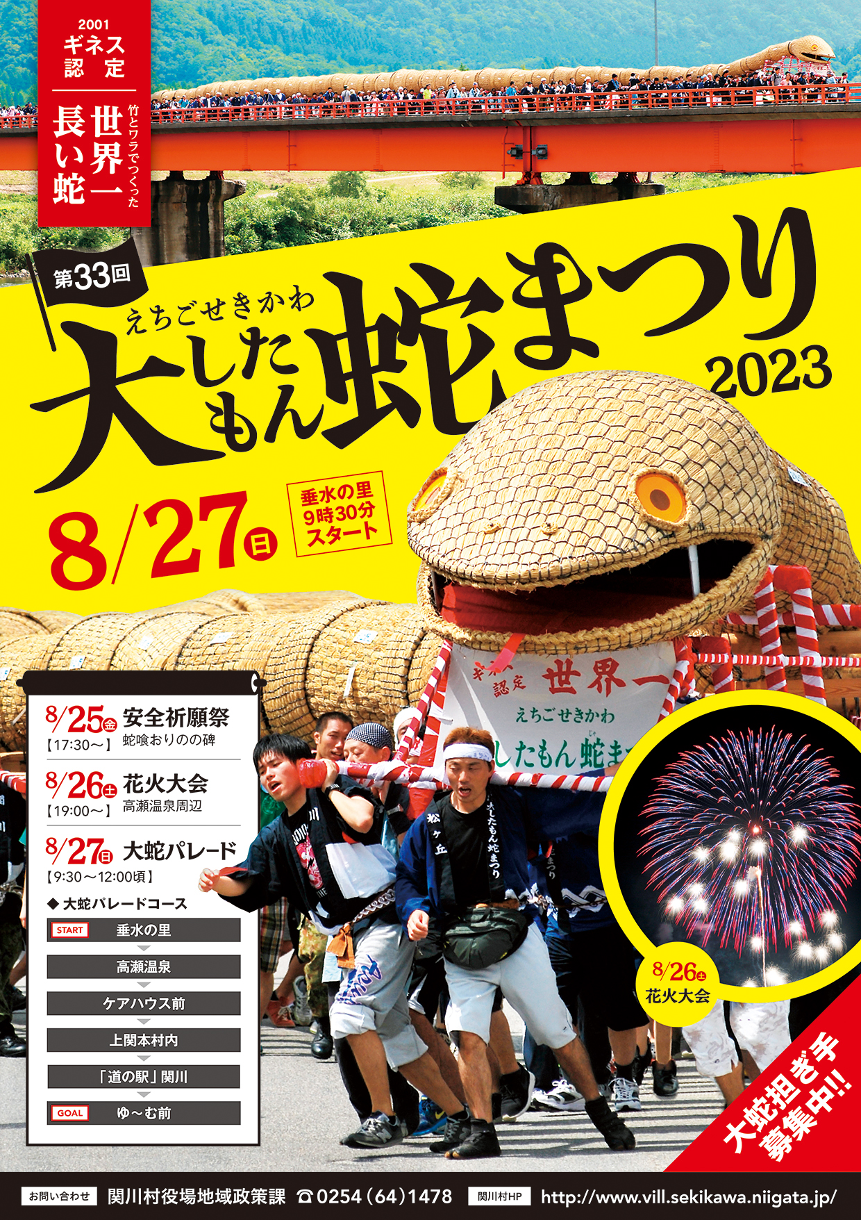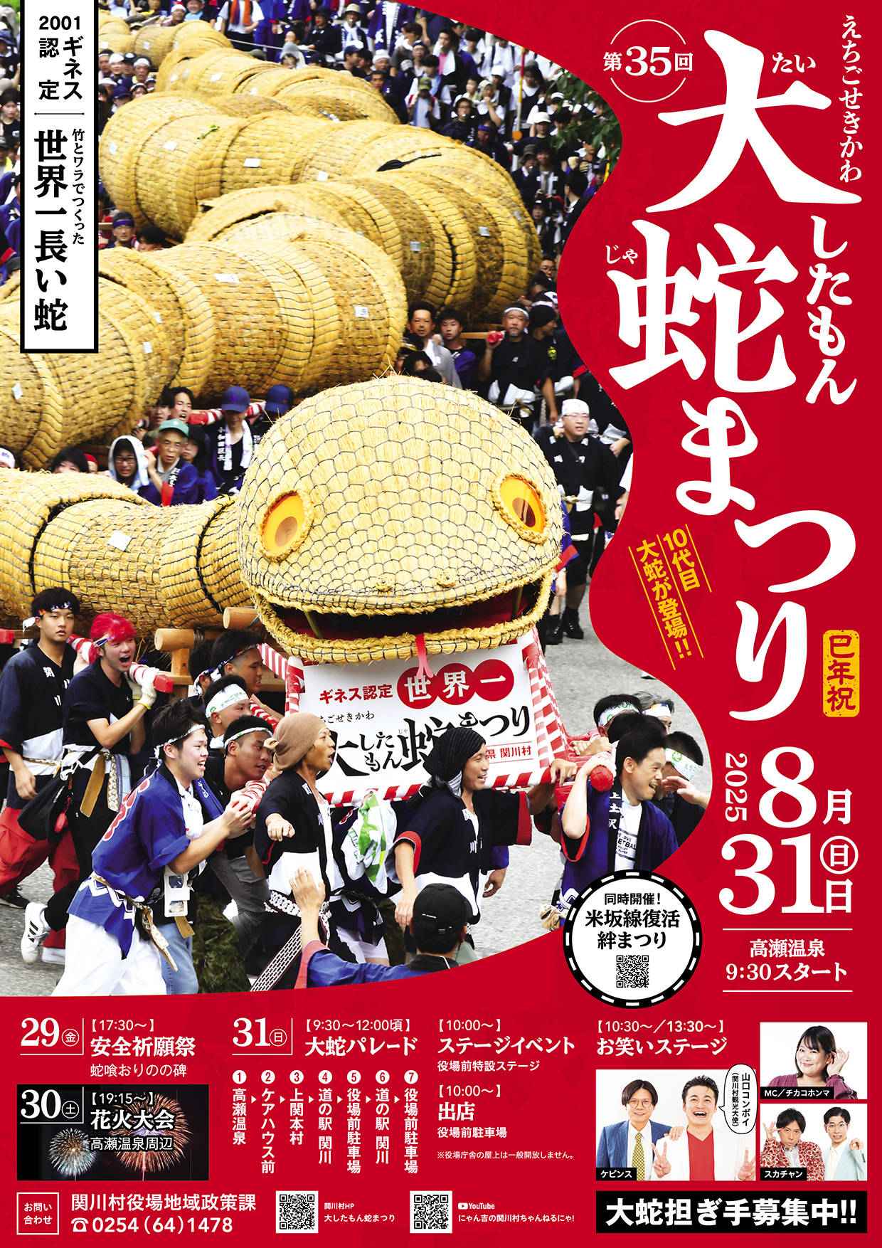 2025年/ギネス記録を持つ大蛇の長さを強調する写真を使用しました。うねり歩く大蛇の動きを赤い曲線で表現し、若者向けのデザインにしました。
