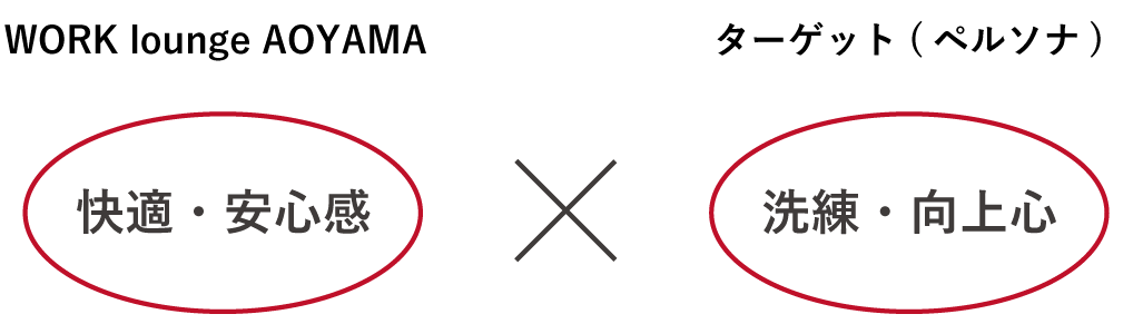 「WORK lounge AOYAMA」の立ち位置を印象づけ、ターゲットの興味を惹きつける。