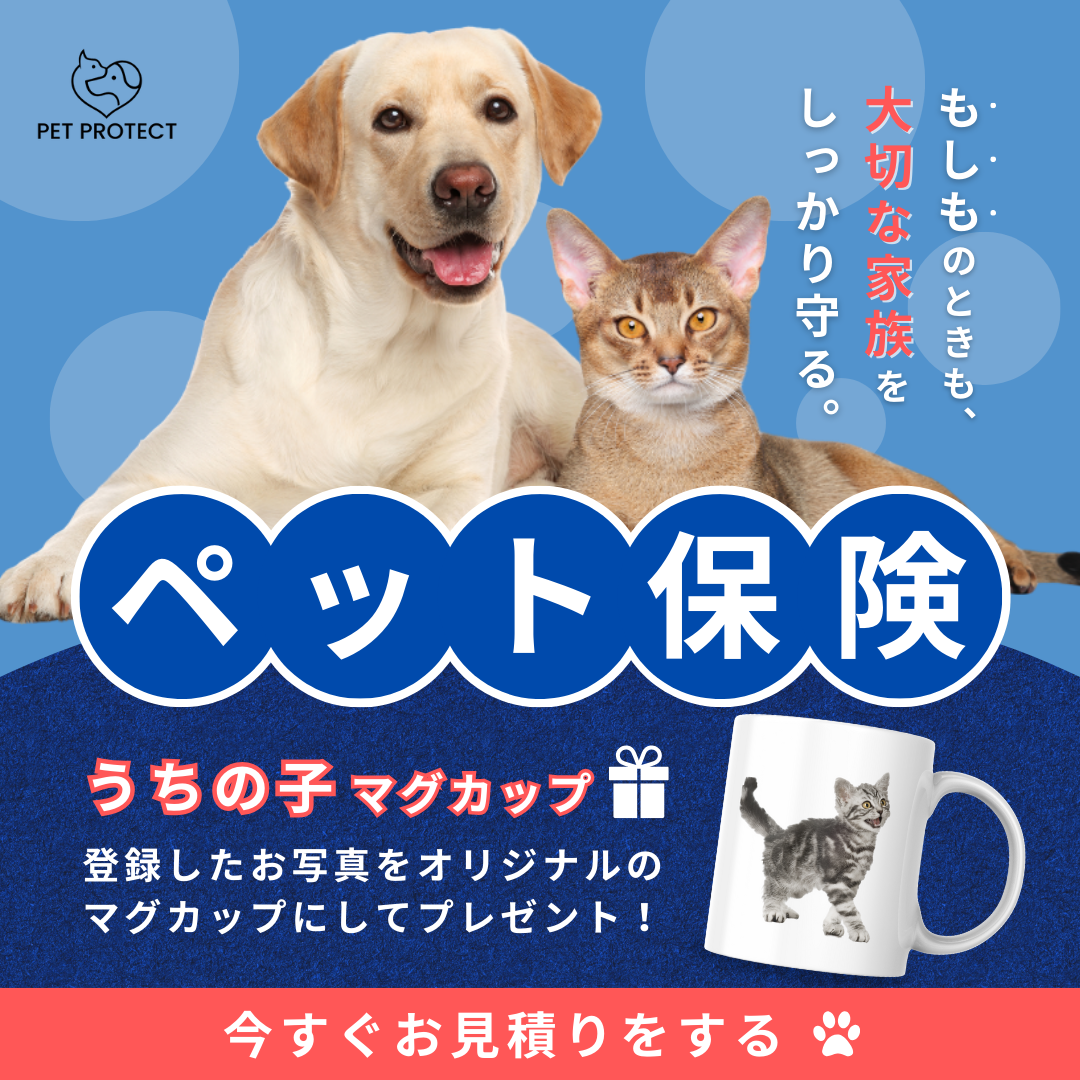 縦型のレイアウトを使用し、上部に犬と猫の写真、中央に「ペット保険」のテキストを大きく配置することで、何についてのバナーなのかがはっきり分かるようにしています。