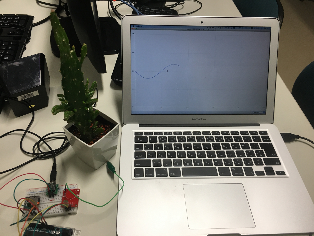 元来、サボテンには触ると痛いという特徴がありますが、この喋ボテンは触った自分の手ではなく、触られたサボテンの方が痛がるという代物です。 最初のプロトタイプは3日で作成、その後現在まで改良を重ねてます。企画・設計・実装全て吉松