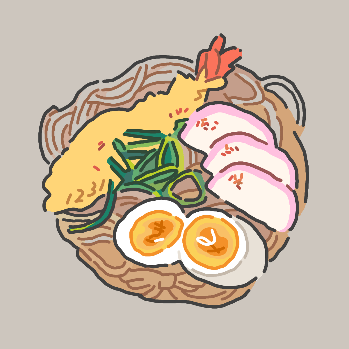 としこしそばの写真を見つけたので描きました(七味を描き忘れていたので加筆しました)。