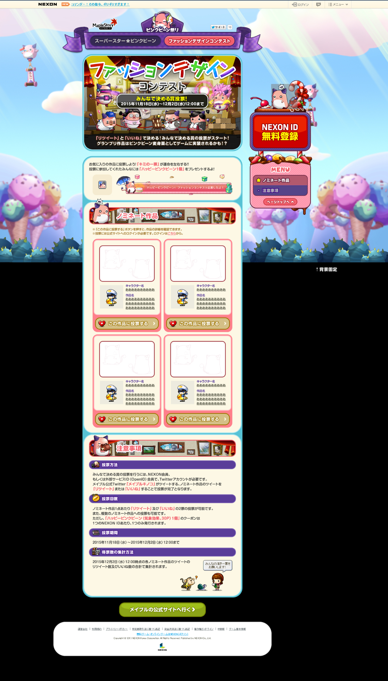 ◆担当箇所:WEBデザイン ◆PJメンバー:企画・WEBデザイン・フロントエンド(コーディング)・開発…各1名 ◆平均制作時間※フィードバック&リサイズ作業含む: イベントページ(1週間〜2週間)・TOPヘッダー(2〜3時間)・各種バナー(1〜3時間)