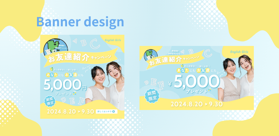 今回の制作では色や写真、登場人物の服装など、季節感を表現する要素を選ぶのに苦労しましたが、夏らしさを感じられるバナーに仕上げることが出来ました。今回の実践を通じて多くの学びを得ることができました。