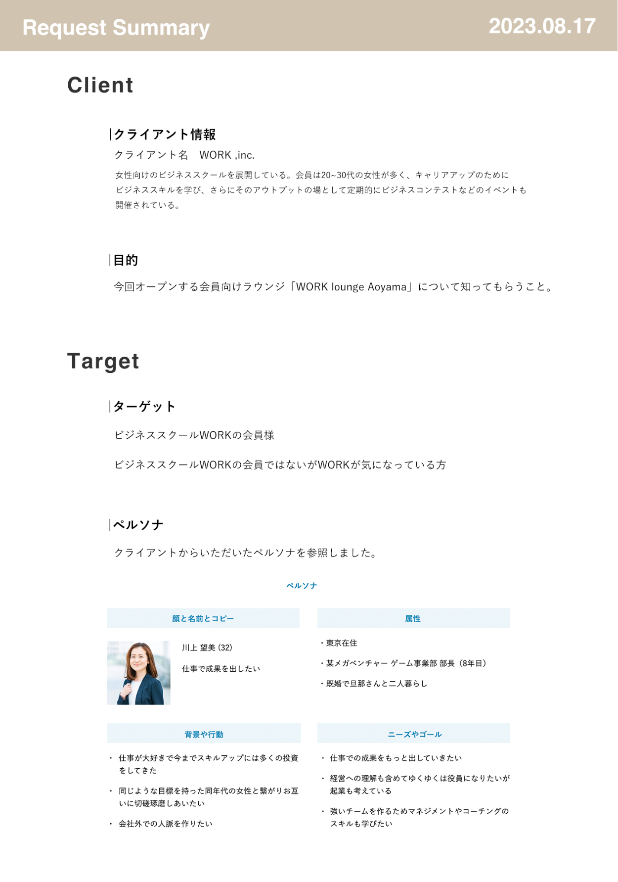 いただいた要件書と想定ターゲットを分析し、ターゲットのニーズを洗い出しました。ニーズに基づき、ターゲットに与えたい印象を言語化し、WEBサイトのコンセプトとして設計。コンセプトをもとにユーザーストーリーを設計し、情報設計を練り直しました。