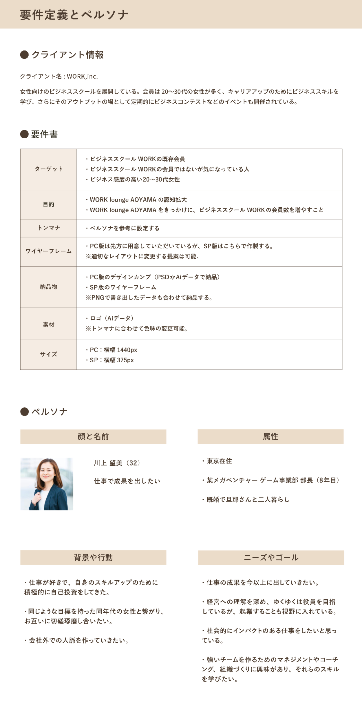 クライアントから提示された要件書とペルソナを以下の資料にまとめました。