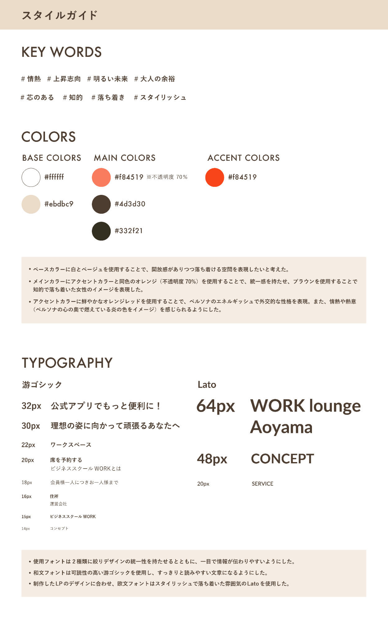自身で設定したユーザーストーリー、WFの修正案とスタイルガイドを以下の資料にまとめました。