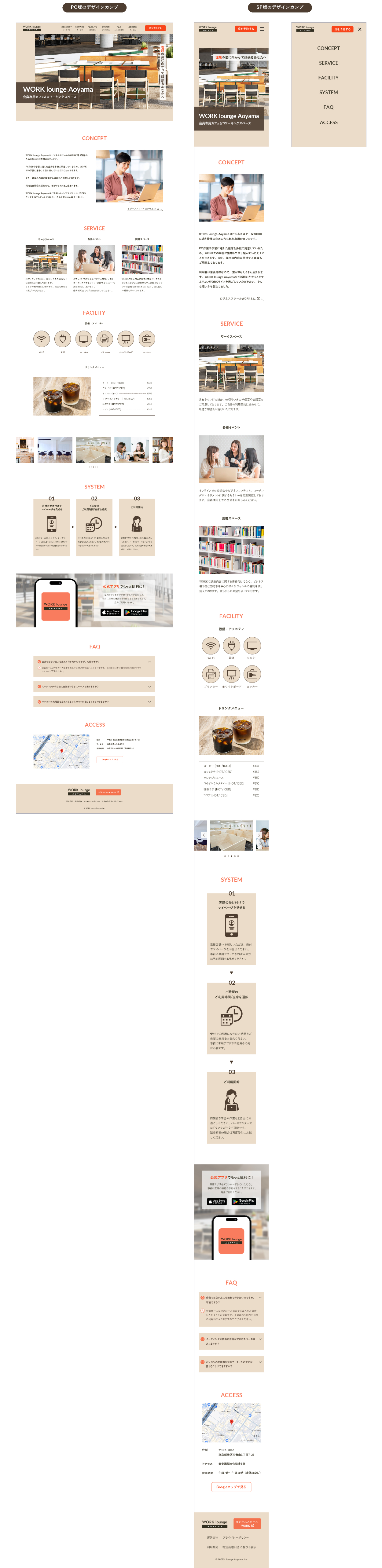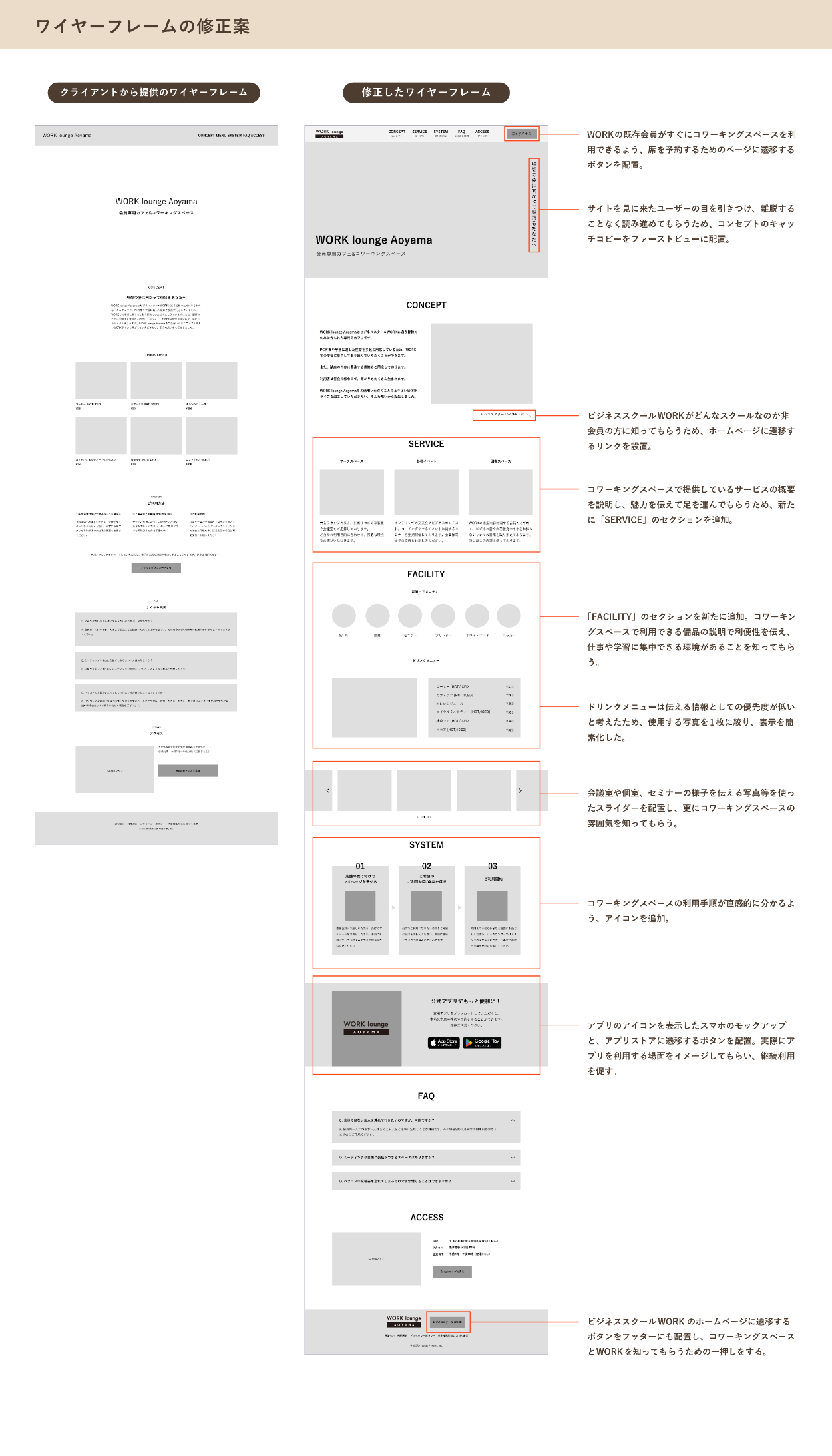 SHElikes MULTI CREATOR COURSE Designer の4つめの課題で、会員制コワーキングスペースのLP制作に取り組みました。 架空のクライアントからの依頼をもとに、PC版ワイヤーフレームの再設計、PCとSP版のデザインカンプの制作を行いました。