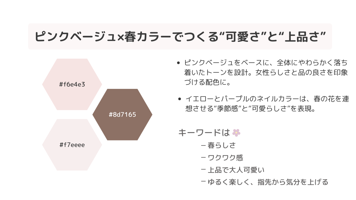 ターゲット: ネイル好きな20〜30代女性/トレンド&季節感重視