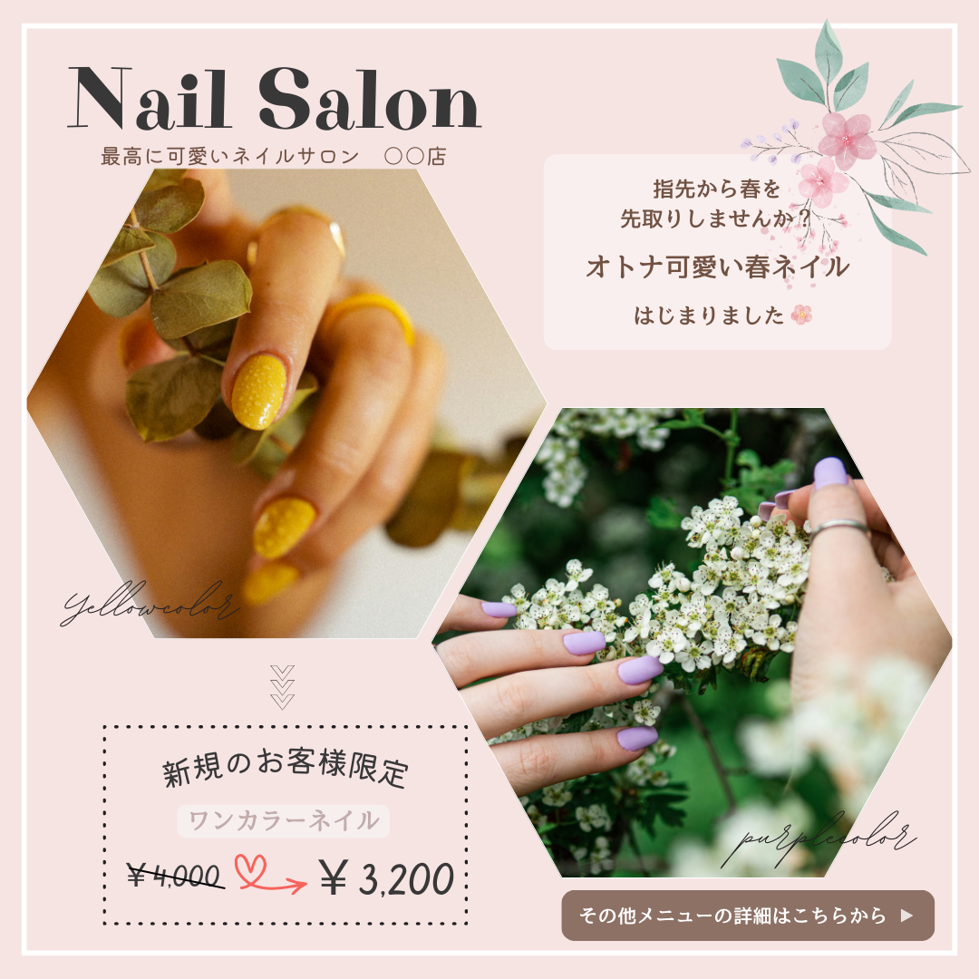 ネイルサロン|春の新規顧客向けキャンペーンバナー(Canva制作/Instagram用)