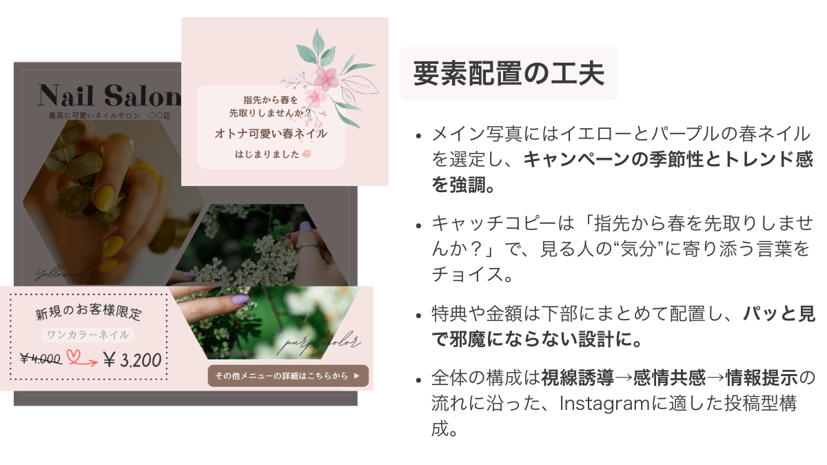 関東に10店舗を展開するネイルサロンの地方駅前店での春限定キャンペーンを想定。