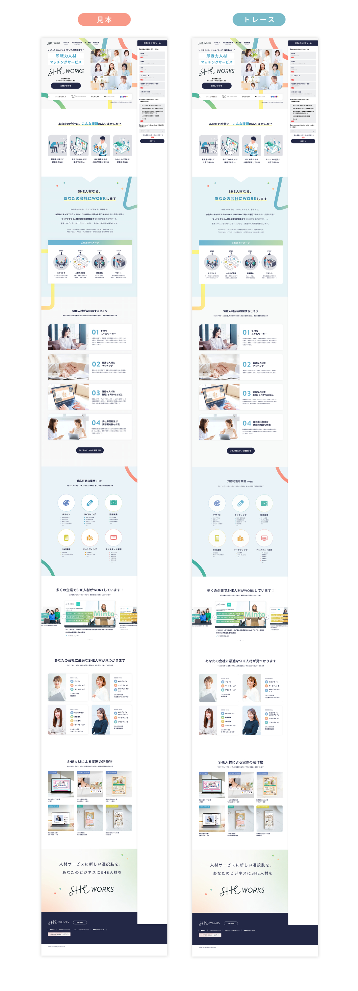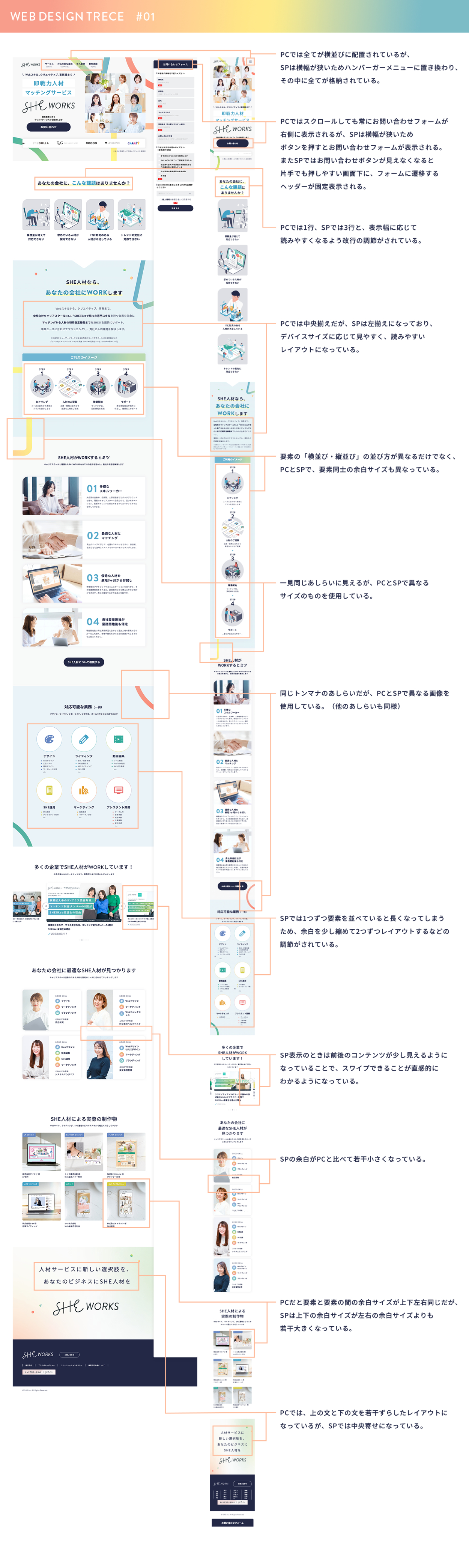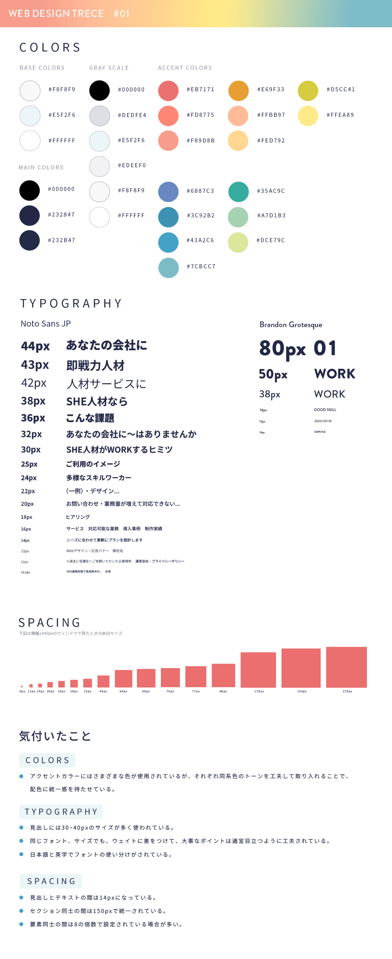 SHElikes MULTI CREATOR COURSE の課題にてWebページトレースを行いました。合わせてスタイルガイドの作成、PCとスマホ画面の分析も行いました。制作期間:1週間