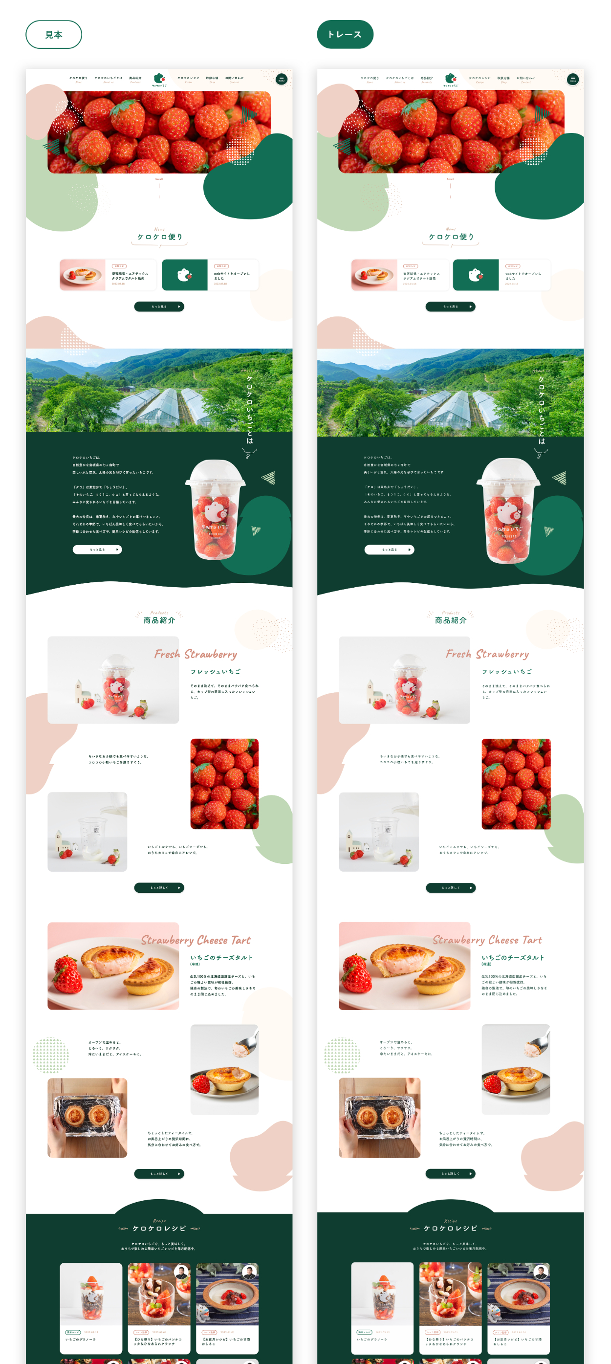 杜のいちご株式会社が提供する「ケロケロいちご」のLPをトレースしました。