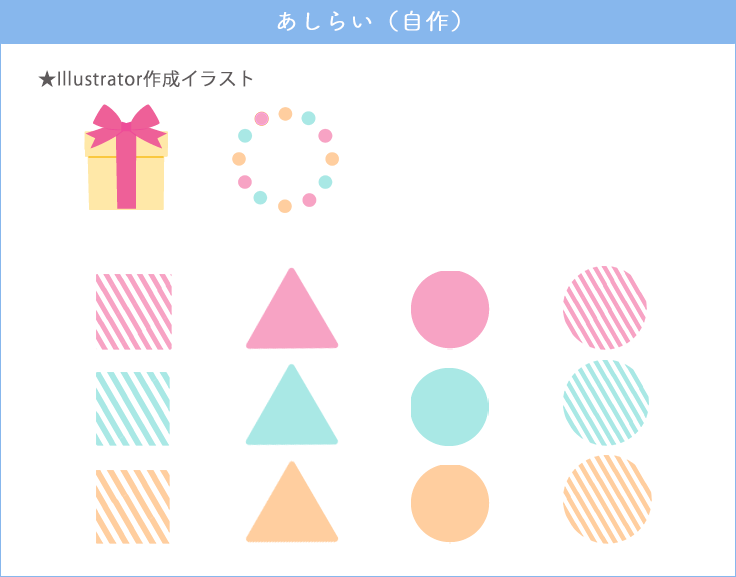 ・図形はIllustratorで作成した。丸みのあるイメージを出したくて、三角形や四角形の角を丸くした。