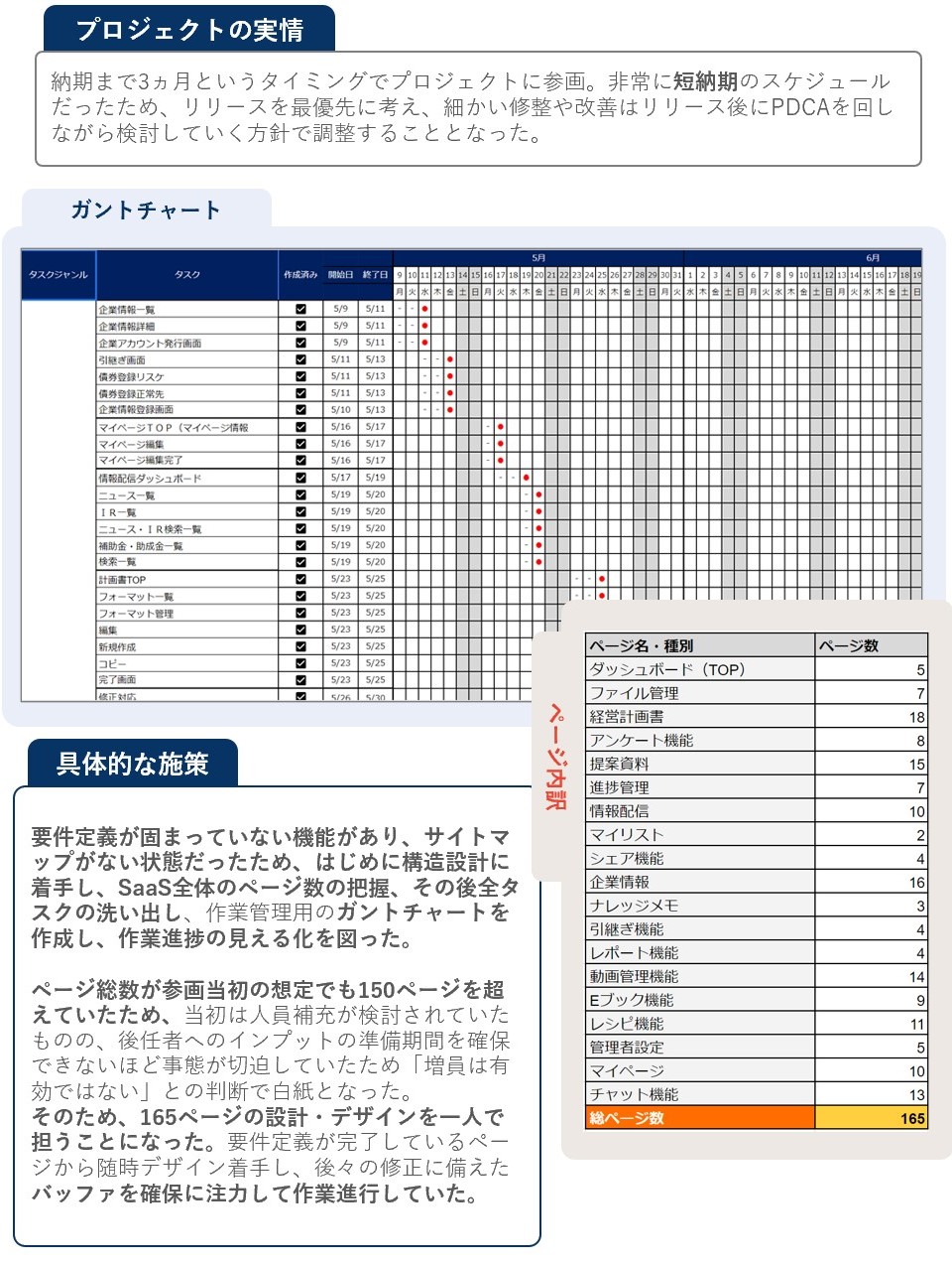担当領域:ディレクション(進捗/タスク管理/情報設計)・自社SaaSの画面UIデザイン