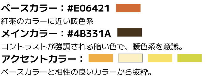 ・紅茶をイメージしたオレンジ色に掛け合わせ、あたたかで女性らしいカラーを採用。茶葉をイメージした花のアイコンなどでポップさを表現しました。