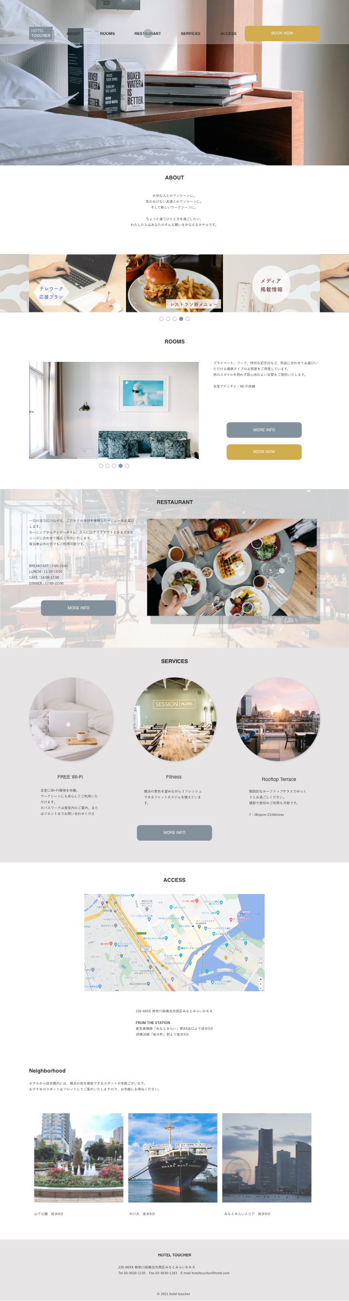 ゆったりとした時間を過ごせるイメージを表現するため、全体的に彩度を落とした配色にいたしました。