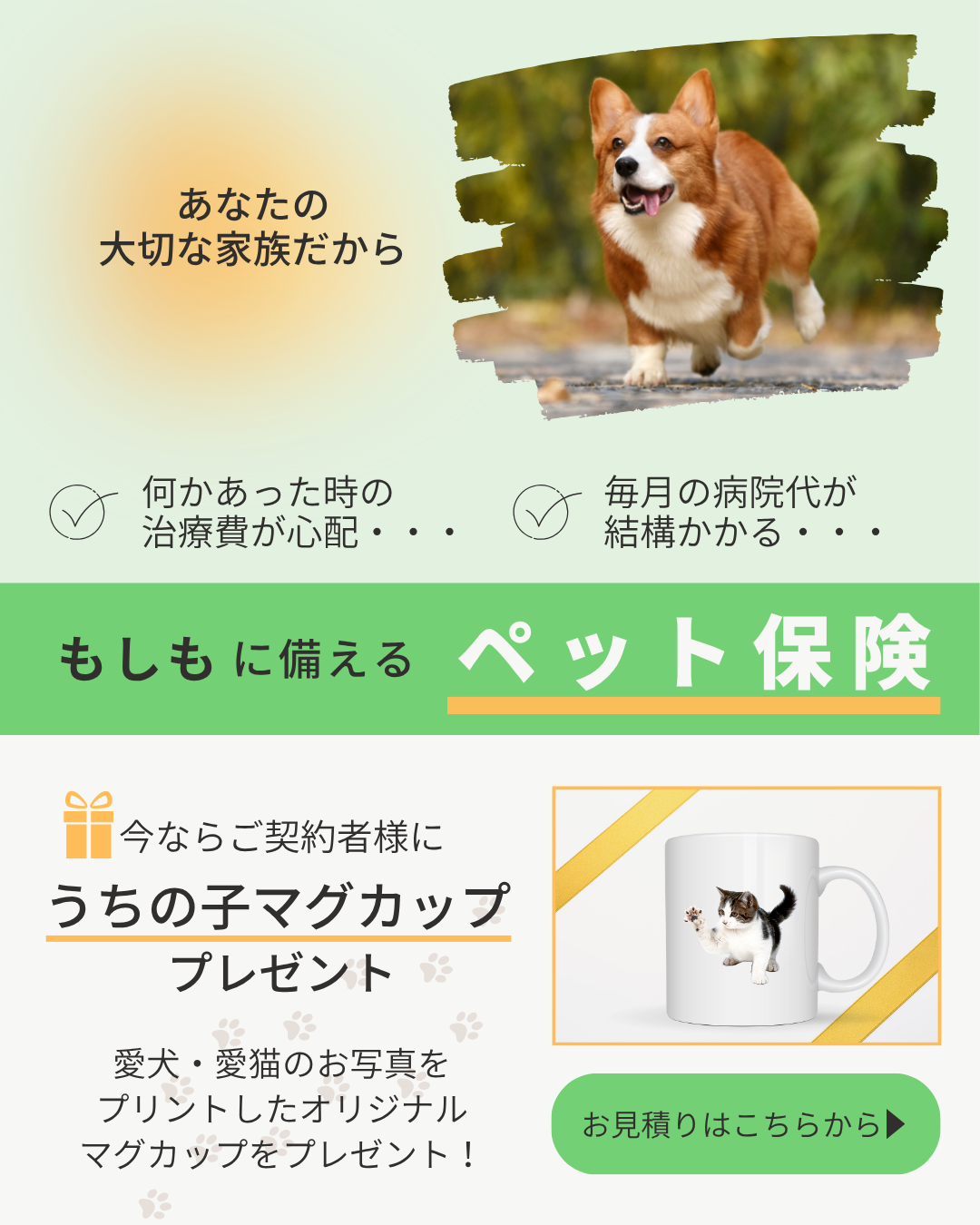 保険の安心感や信頼感と、ペットを思うターゲットの気持ちに寄り添うイメージで配色を決めました。キャンペーン情報が伝わりやすいよう、マグカップと猫の画像を取り入れました。見やすいバナーになるよう意識しました。