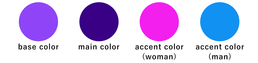 イメージカラーである紫を中心に差し色として女性モデルのデザインにはピンクを、男性モデルのデザインにはブルーを使用。