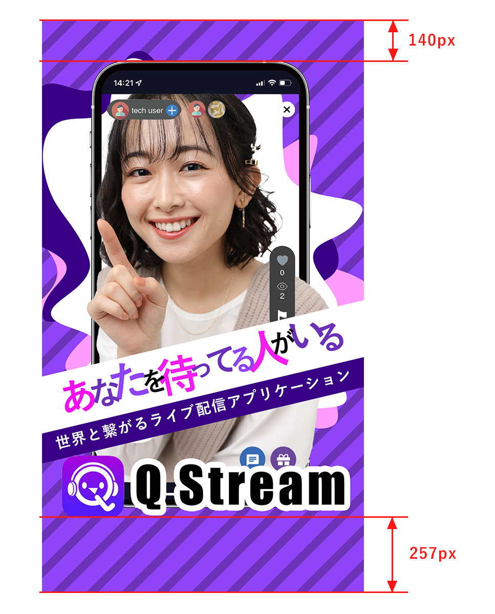 グローバルライブ配信アプリ『Q Stream』のSNS広告用バナー