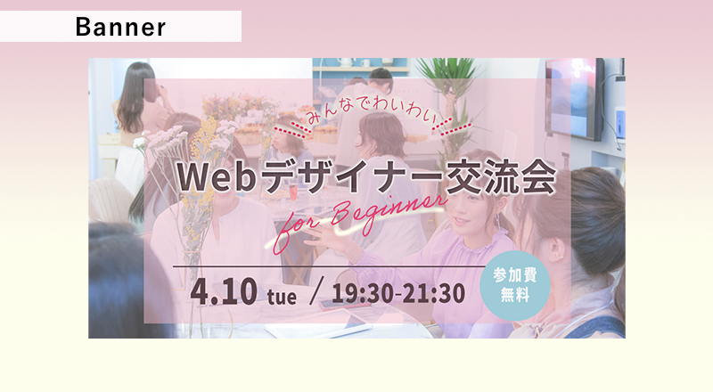 - 女性向けであることがわかるピンクを基調とし、交流会の楽しく賑やかなイメージが伝わるようにしました。