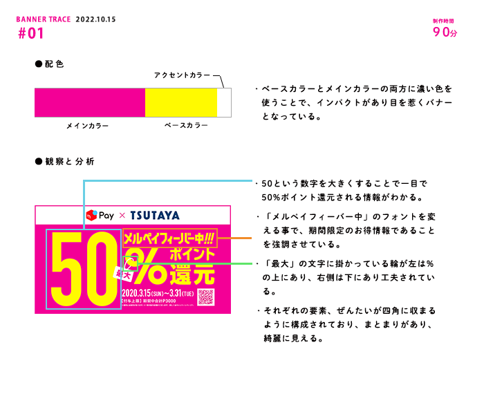 バナーについての配色や配置、フォントサイズなどの分析も行っています。