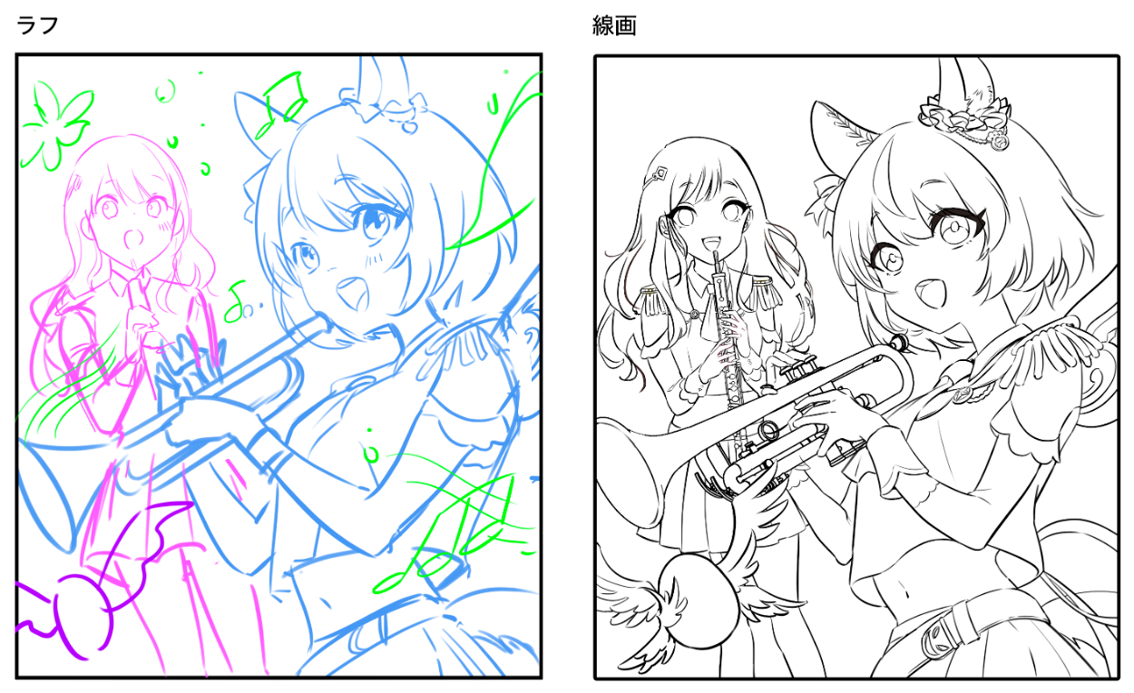キャラクターデザインをもらい、立ち絵を作成しました。