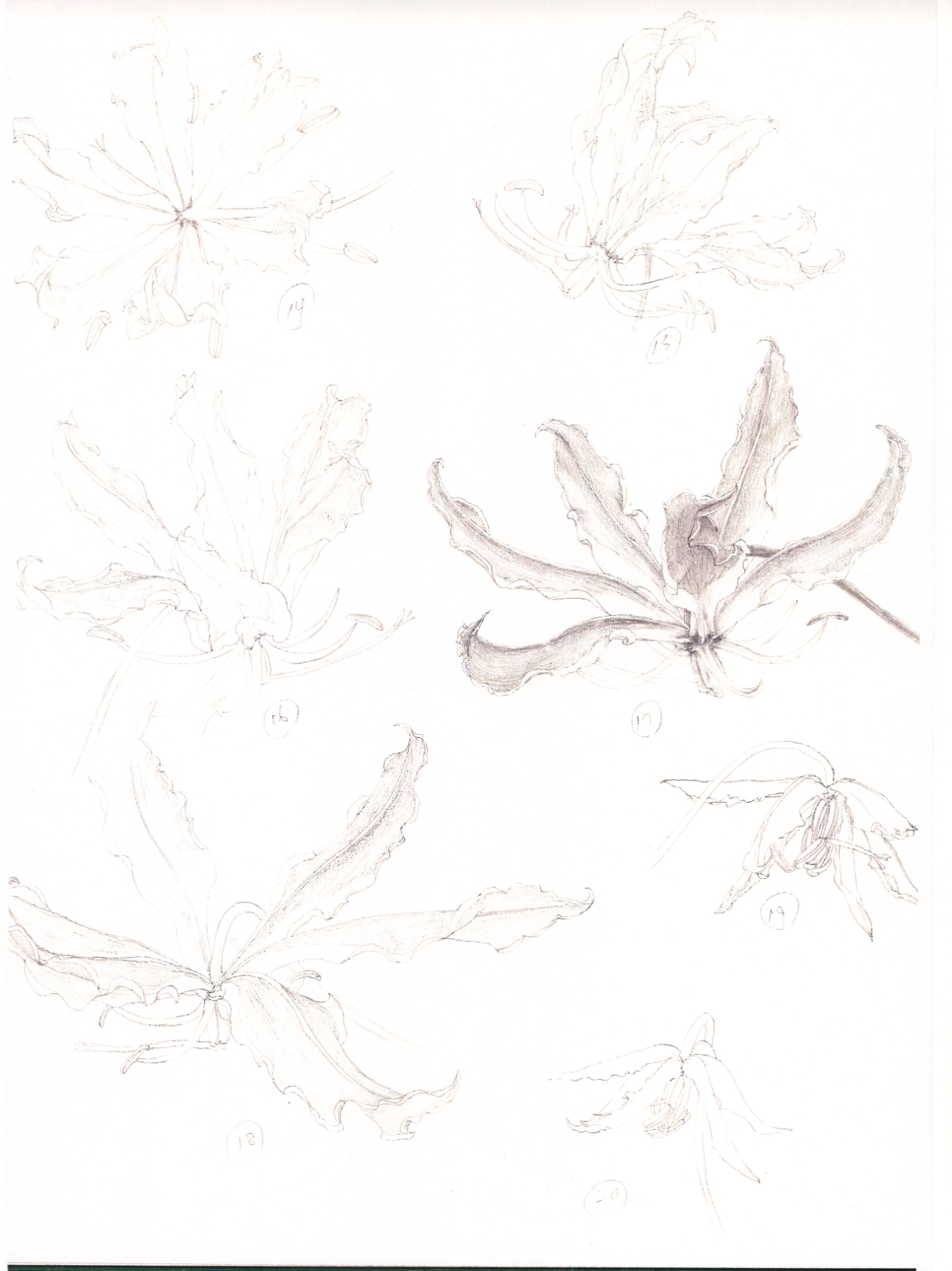 糊置きと彩色のぼかしの練習に、基本の模様をトレースしています。