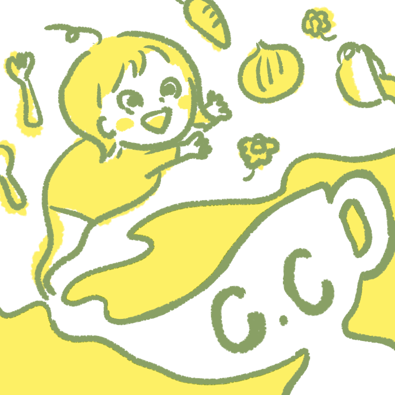 カレーのランプをモチーフに、出てくる煙はブログタイトルの「CCC」を表現しています。