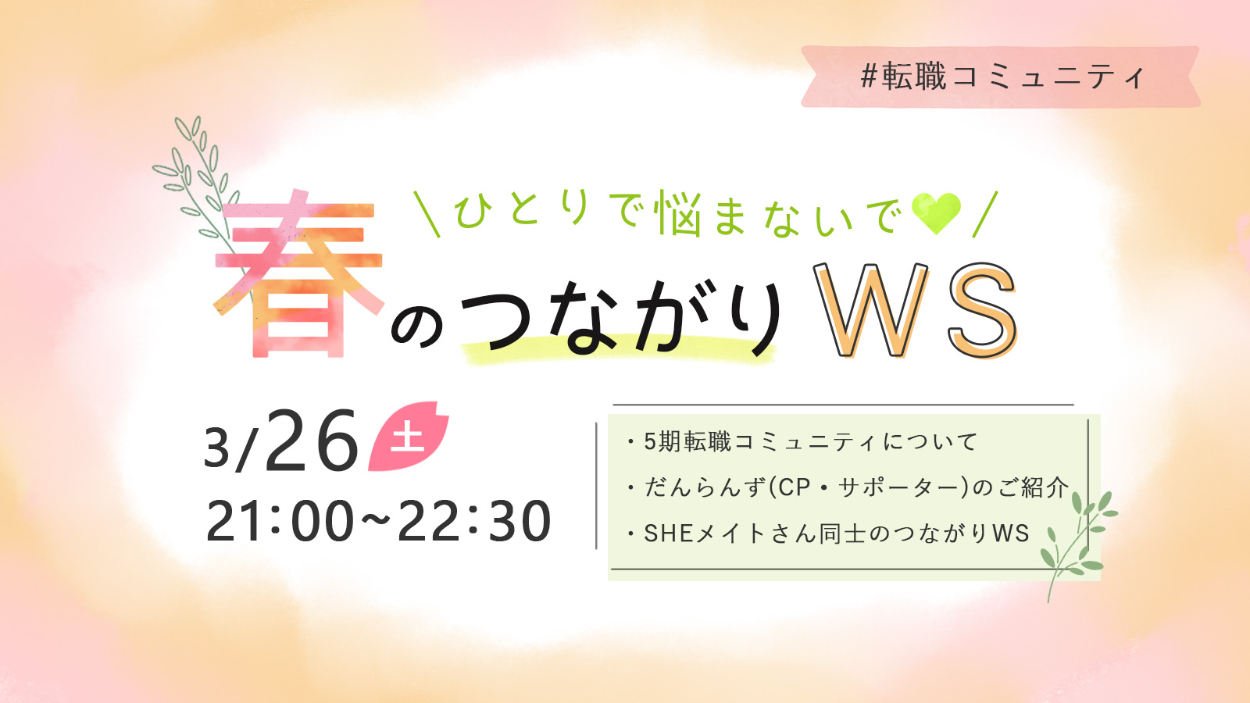 キャリアスクールSHElikesの転職コミュニティにて、イベント告知用バナーを制作しました。(制作時間:約2時間)