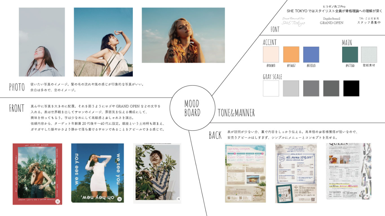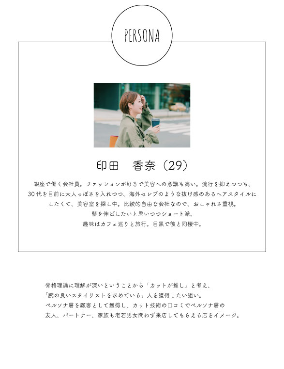 元々美容師だった自分の経験を活かし、クライアント側の「こんな人に来てほしい」にピンポイントにアプローチしたデザインです。