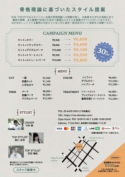 美容室の新規オープン集客チラシの制作。