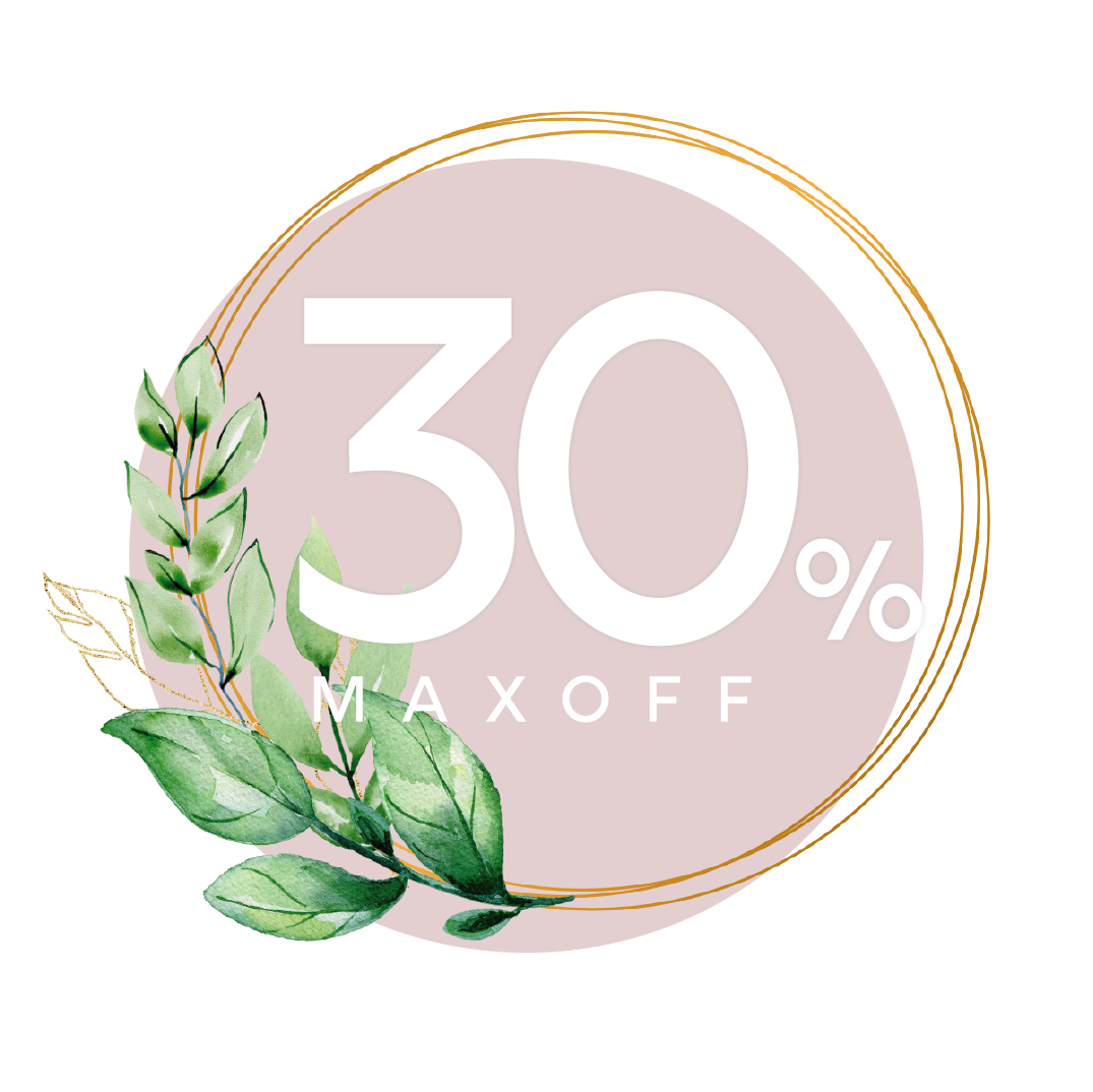 また、「30%MAXOFF」は一番見てほしい訴求なので、数字を巨大にして、ボタニカルで上品な印象を与えるあしらいのイラストで囲み、視線誘導を図りました。