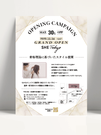銀座の美容院の新規開店時に配布するフライヤーを想定して製作(製作期間:10日)。 クライアントの案件からしっかりと情報整理を行い、ラフ画作成しながら取り組みました。 店舗イメージに沿ったラグジュアリーモダンな落ち着いた雰囲気のデザインにしました。