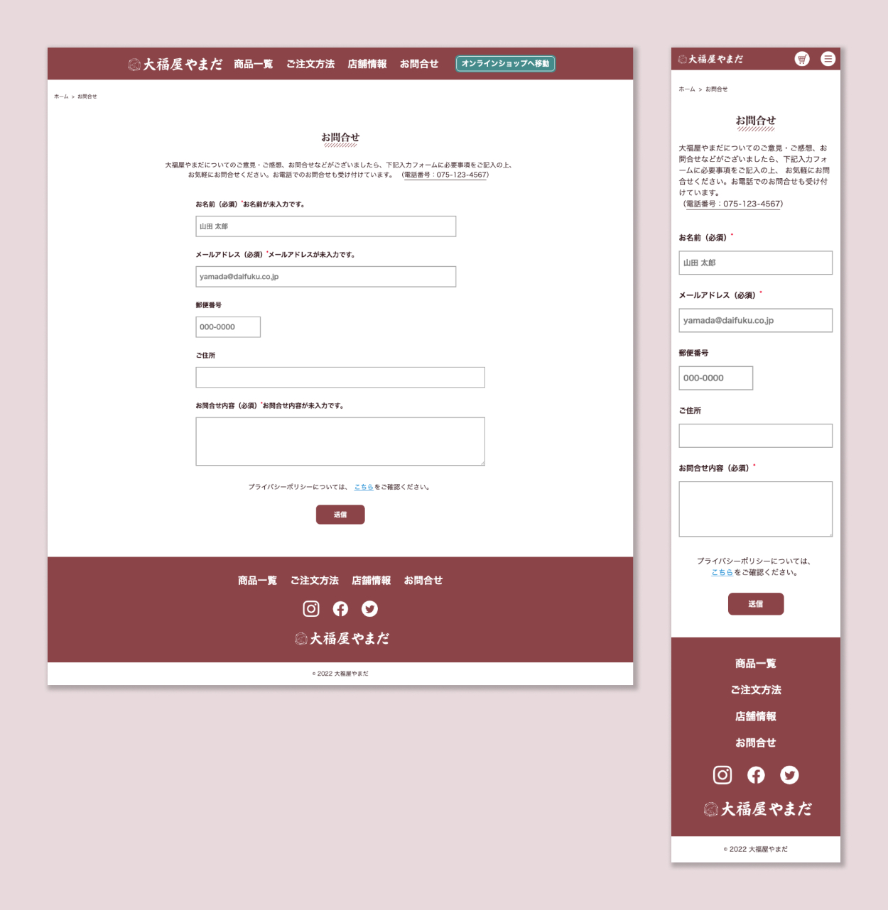 - 老舗で和風な雰囲気を出しつつ親しみが持てるように、筆書体になりすぎないフォントを選択