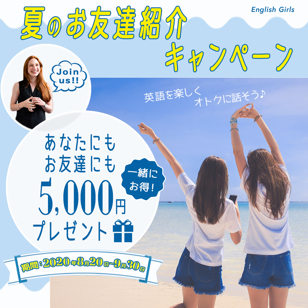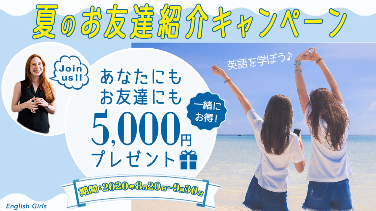 英会話スクールなんだ。わたしにもお友達にも5,000円プレゼントくれるんだ
