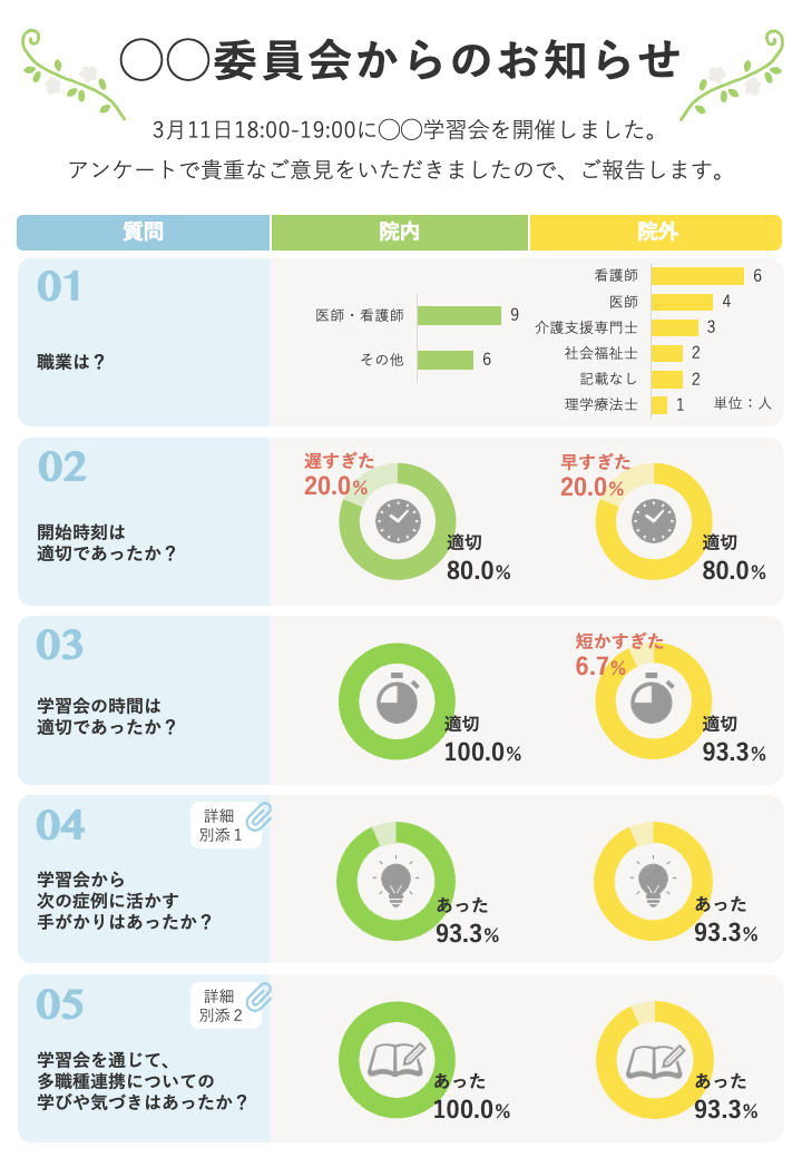 ・実施した勉強会に関するアンケート結果をポスターのような形で見やすくして報告したい