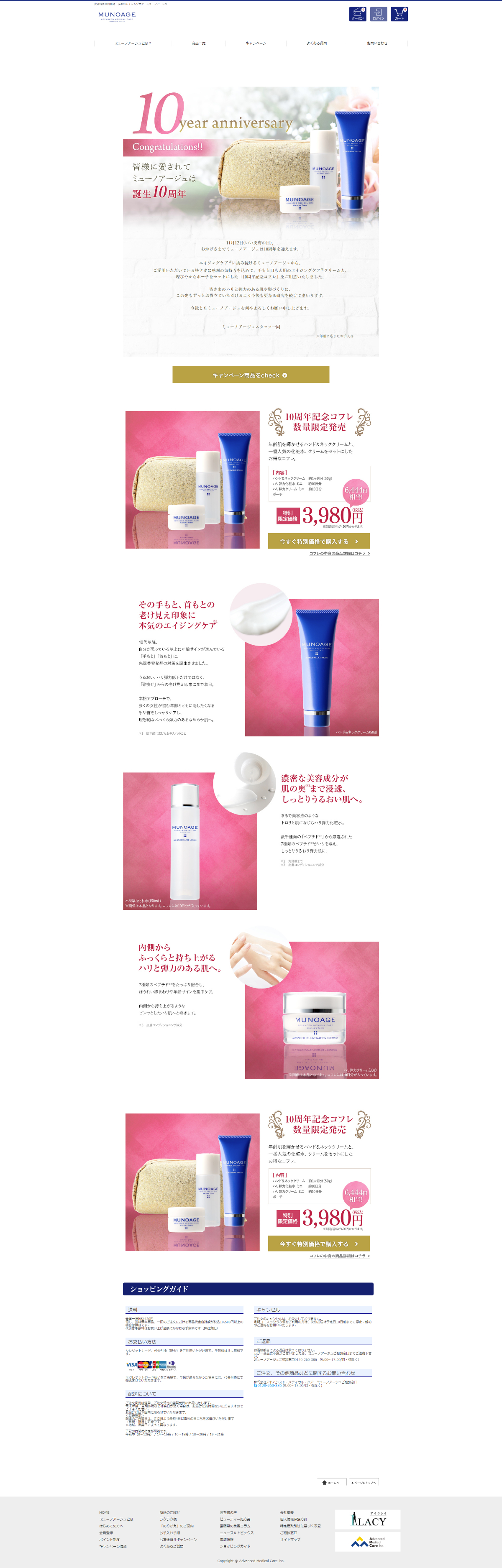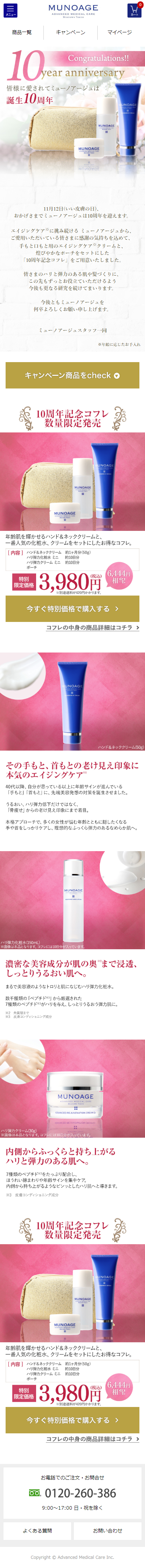 化粧品サイトMUNOAGE【https://www.munoage.com/】の誕生10周年を記念したコフレ販売のキャンペーンページ
