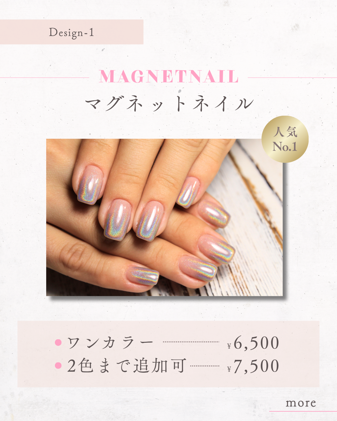 ・ネイルデザインが主役のため、装飾などはシンプルにしました。