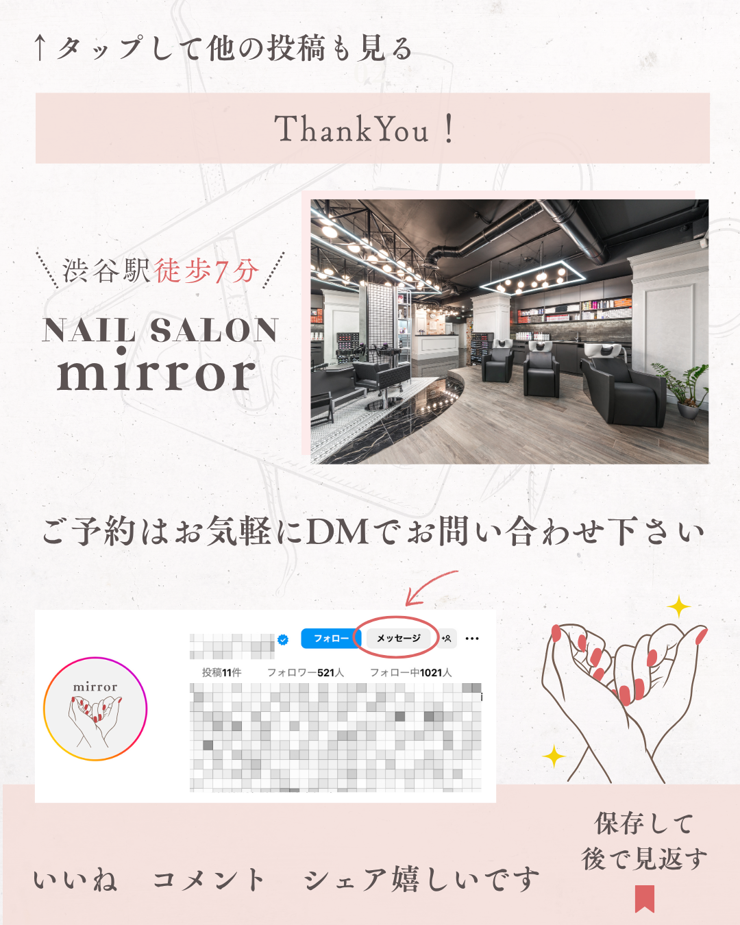 ・余計な装飾は抑えてシンプルなフォントを使用することで、春とネイルデザインを目立たせ、一目でどのような投稿なのか分かるようにしました。