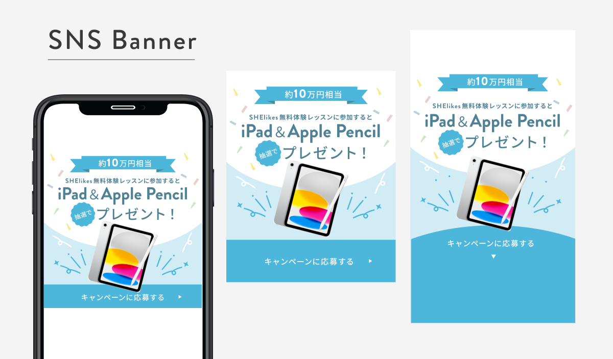 - トンマナは遷移先のSHElikes5月春キャンペーンLPに合わせてブルーで統一。